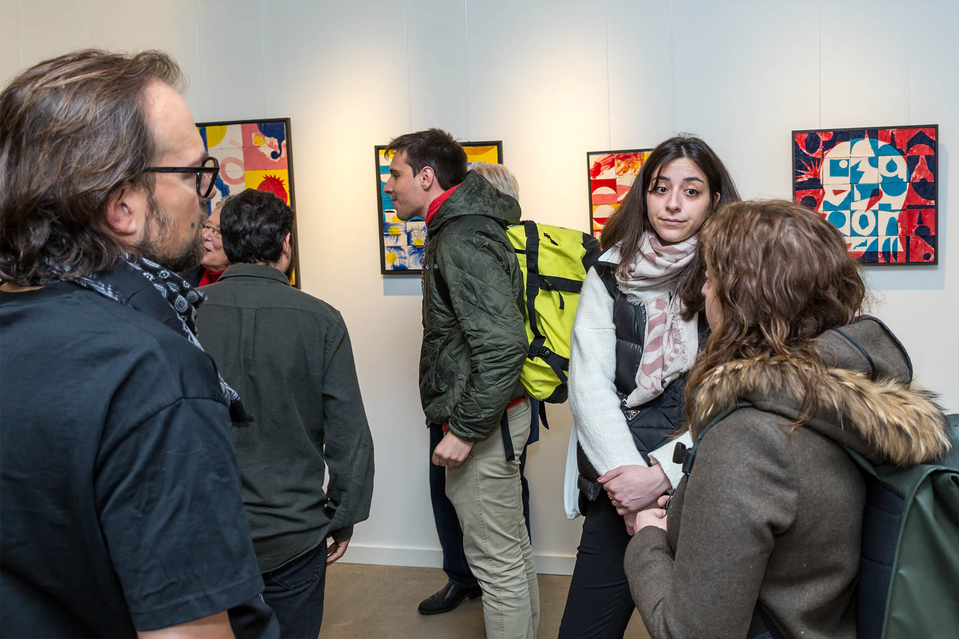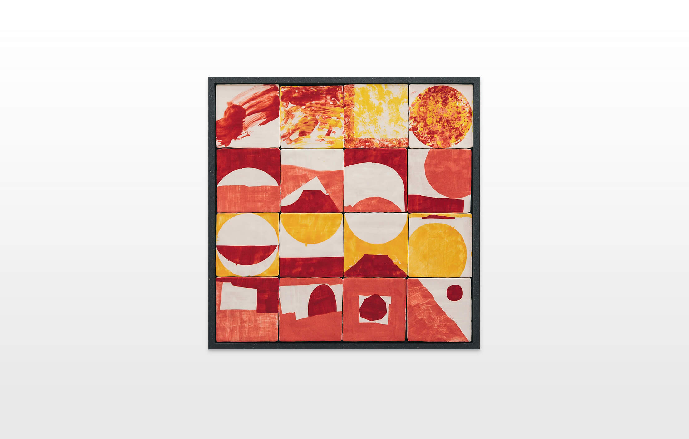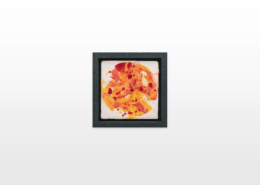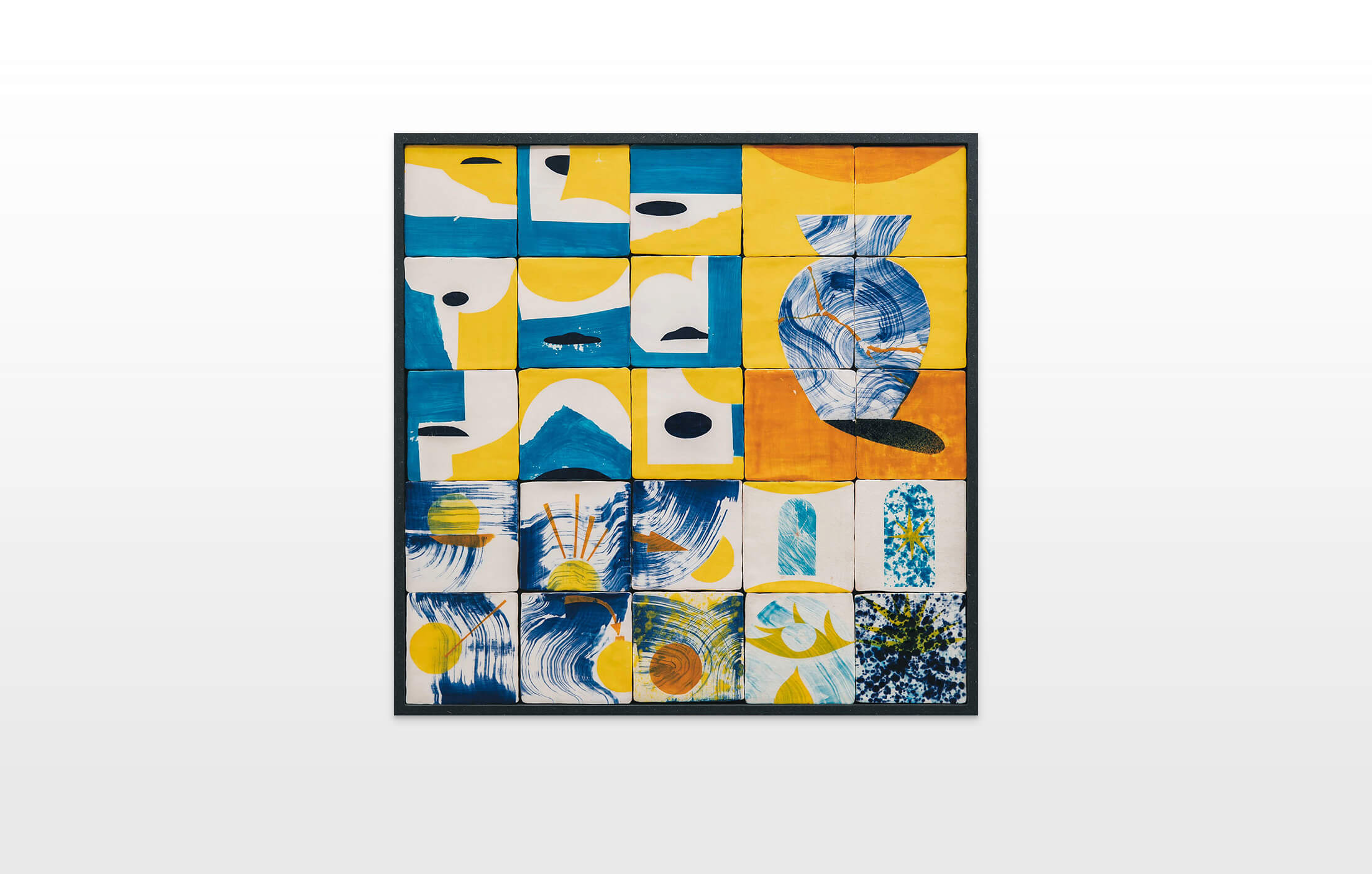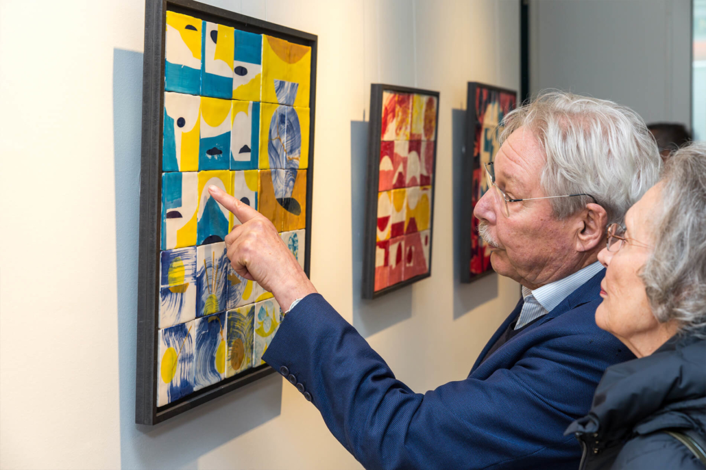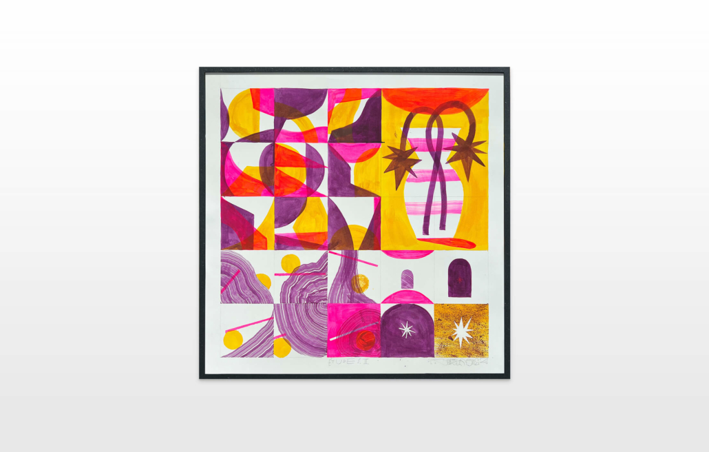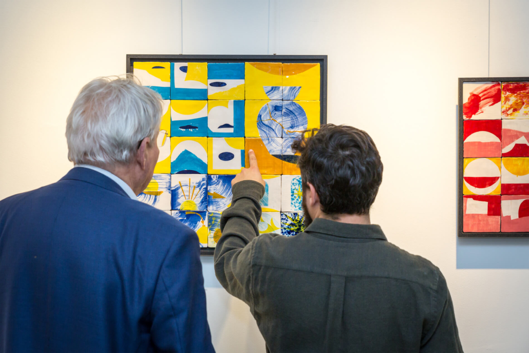 On first sight the tile artworks appear independent in their aesthetics, but looking closer they reveal a certain association to AKACORLEONE’s holistic oeuvre regarding composition, style, visual language and choice of colour. The works in the Faux Pas exhibition are complemented by comics as well as vintage advertising elements and shift from tile to tile between figuration, superposition and abstraction. In contrast to his usual working practice, he consciously chooses a manual, artisanal and somehow intuitive approach.