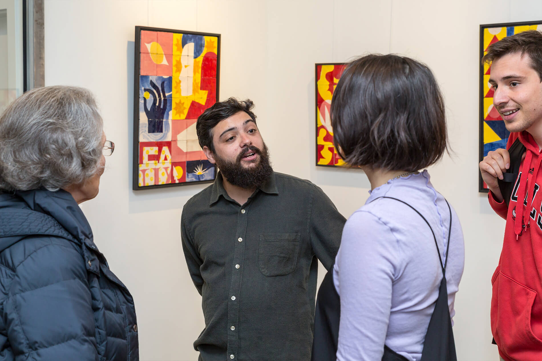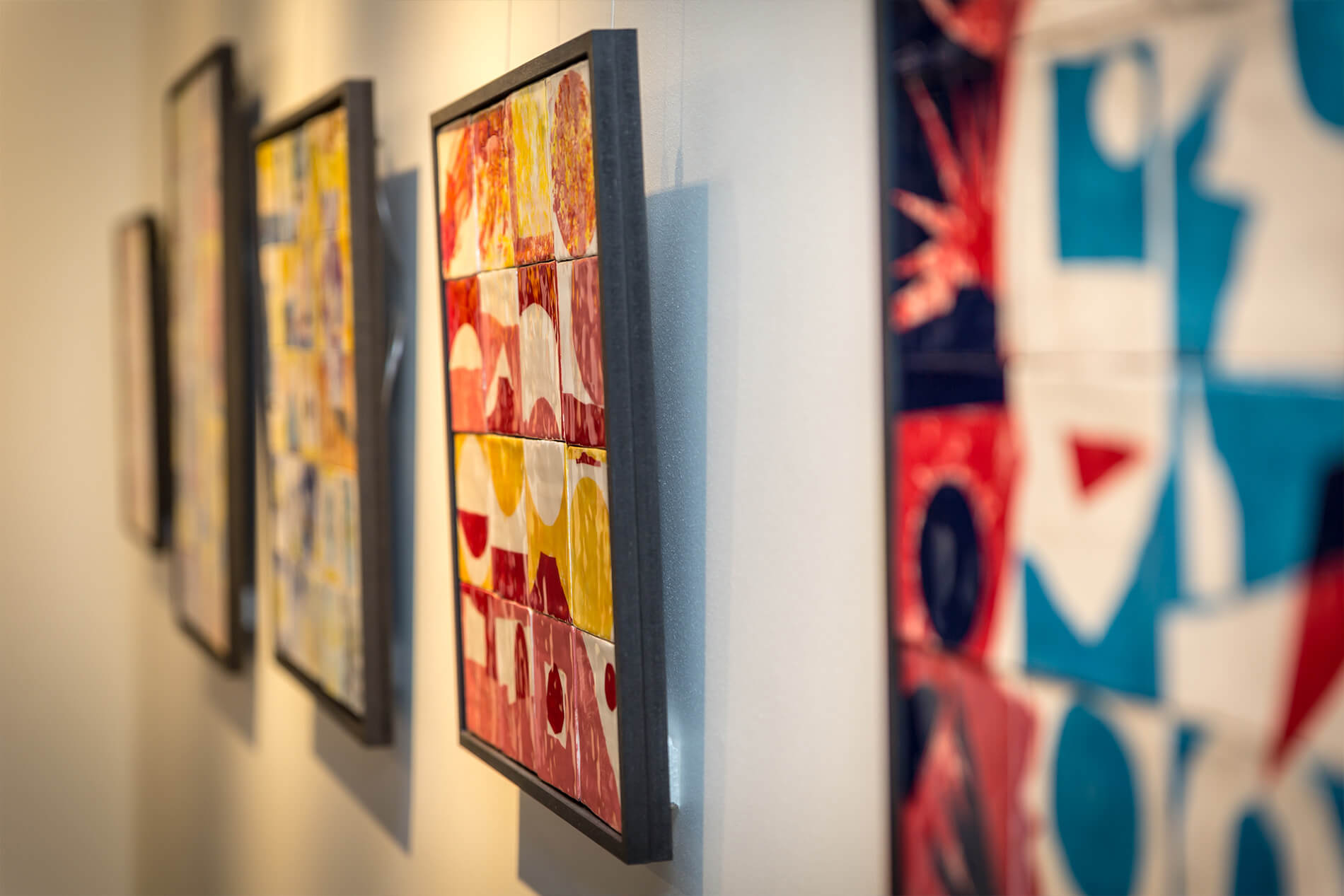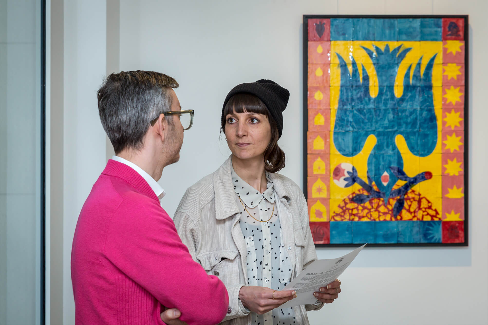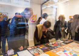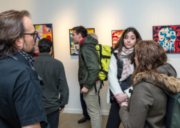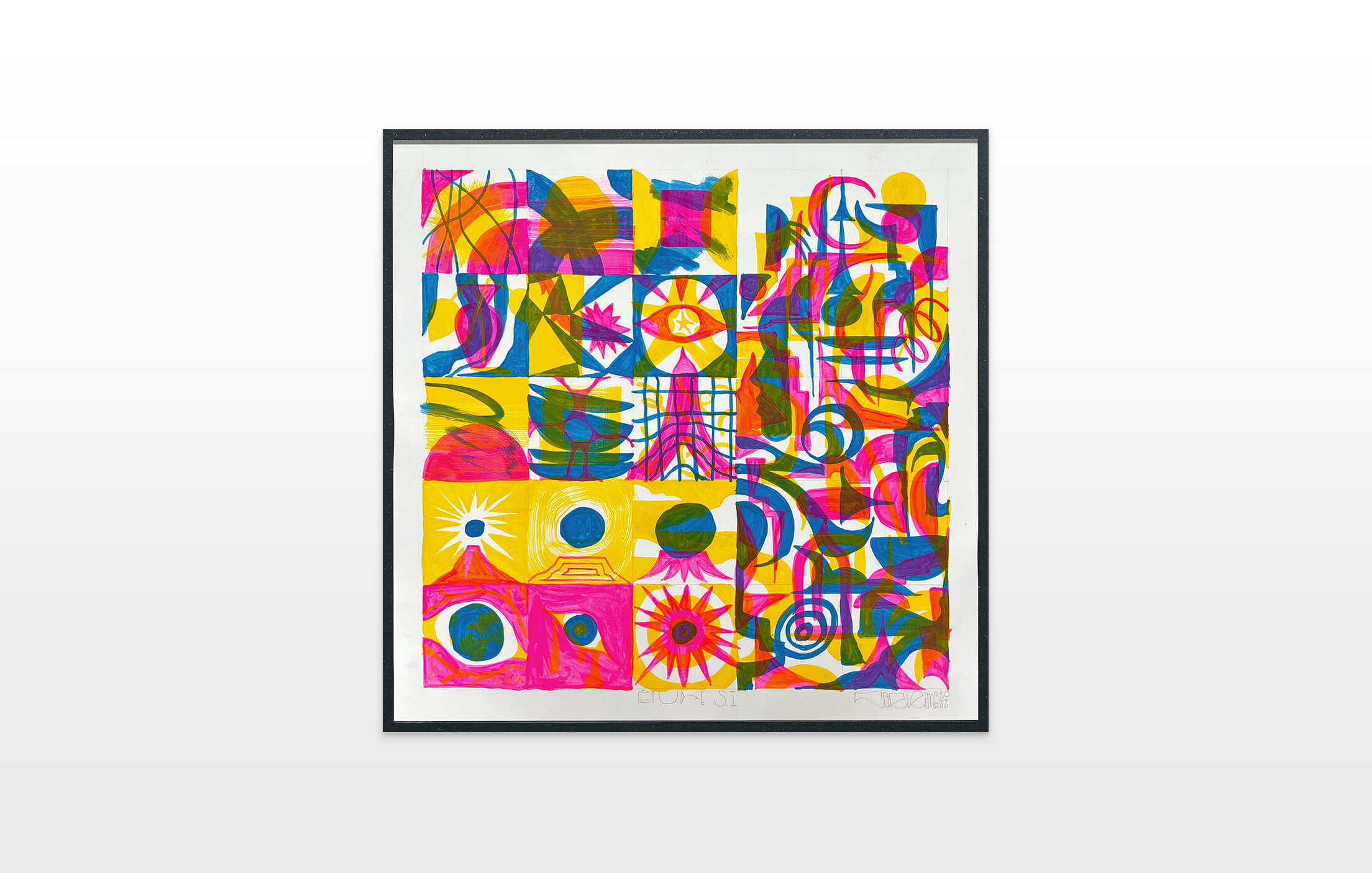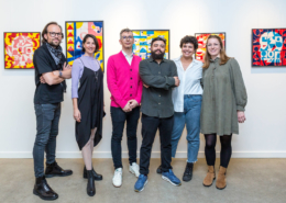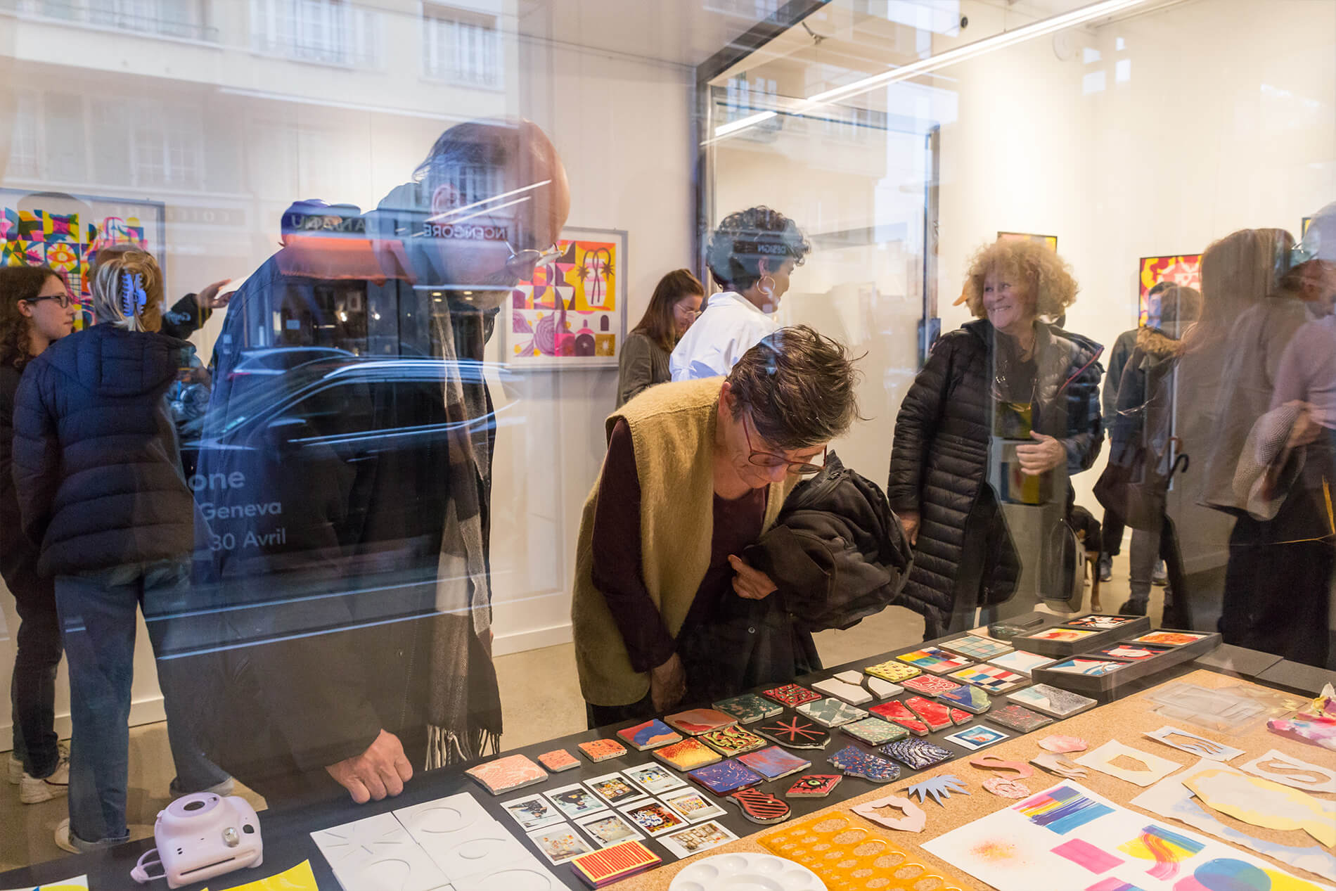 On first sight the tile artworks appear independent in their aesthetics, but looking closer they reveal a certain association to AKACORLEONE’s holistic oeuvre regarding composition, style, visual language and choice of colour. The works in the Faux Pas exhibition are complemented by comics as well as vintage advertising elements and shift from tile to tile between figuration, superposition and abstraction. In contrast to his usual working practice, he consciously chooses a manual, artisanal and somehow intuitive approach.