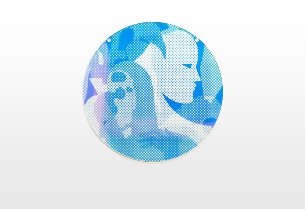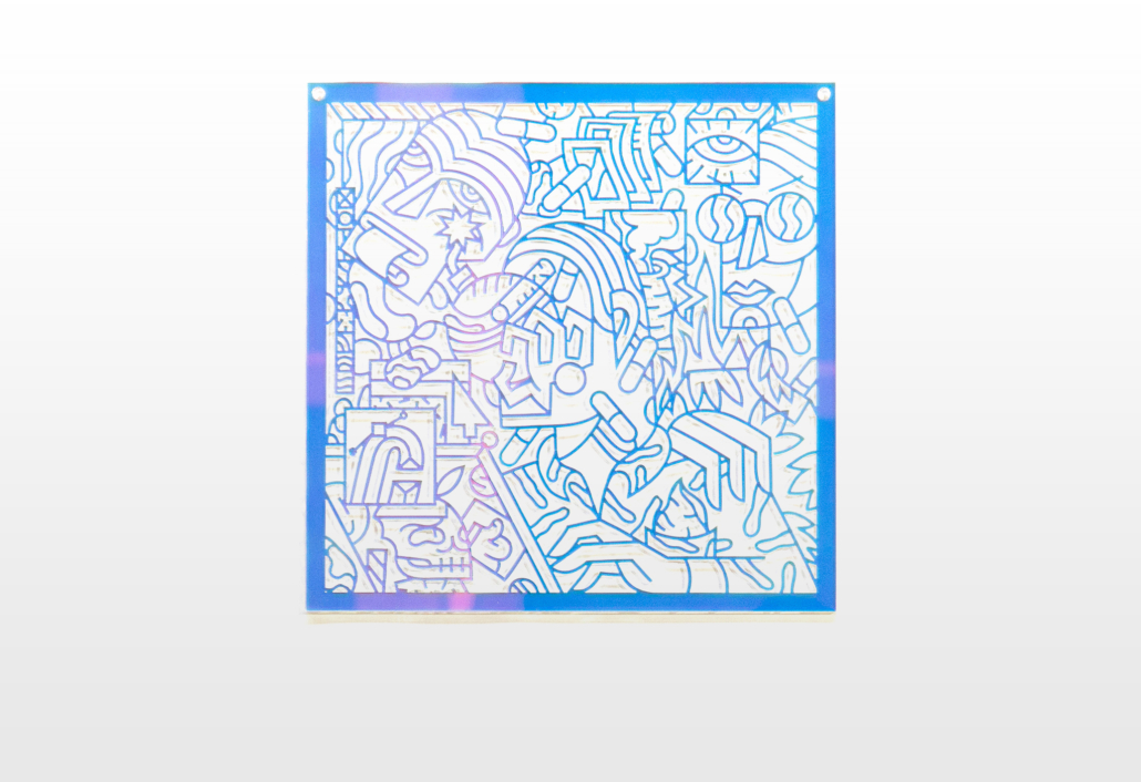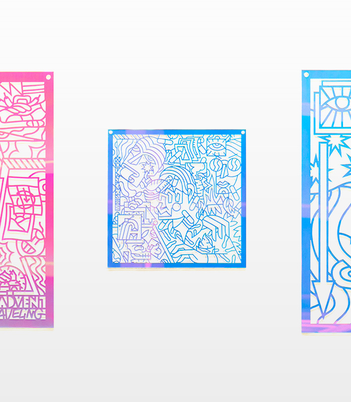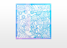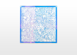 Akacorleone’s pieces often demand the observer’s interaction of some sort to be fully comprehended. Also in this case there are more meanings and interpretations to the subjects portrayed in his artworks. Furthermore, the pieces can take on all possible color variations, depending on the angle you look at it. This is possible due to an iridescent coat for industrial windows. The artist stumbled upon this material and „immediately in love with it“.