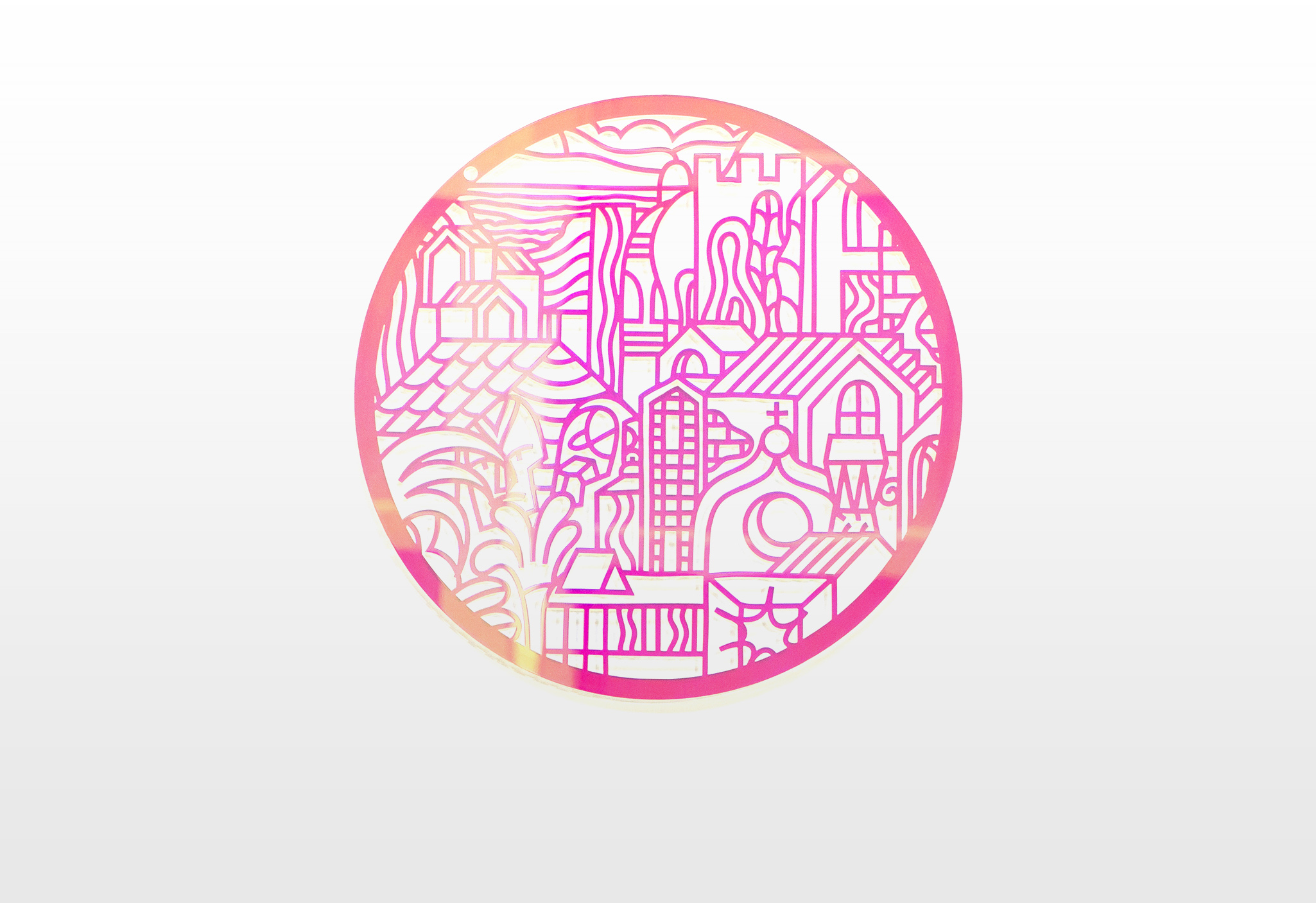 Fine lines, detailed drawings and a rich content constitute Akacorleone’s series. The art works of Iridescent lead through a whole lifetime. Once an ancient city with various buildings is illustrated, another time a surreal dreamland can be discovered. Even the enclosed thoughts of the mind are expressed vividly through the linear yet figurative visual language. With every look, there is more to discover; from plants, to a lit cigarette, to a steaming coffee mug.
