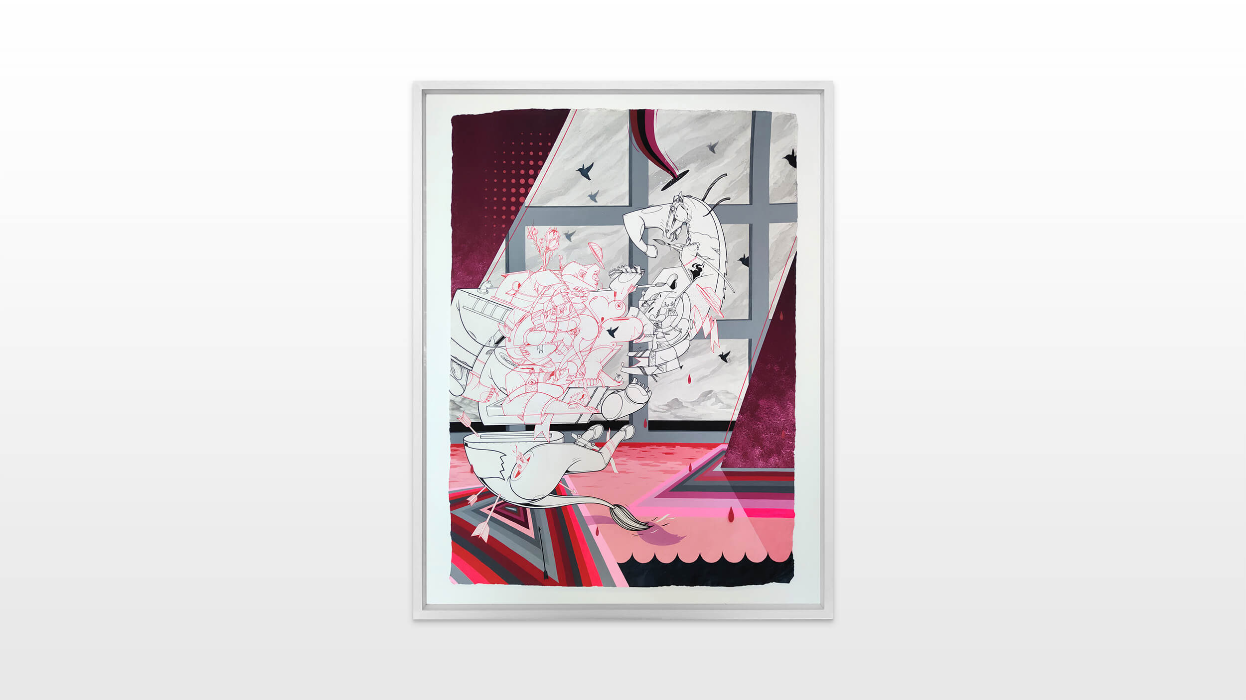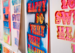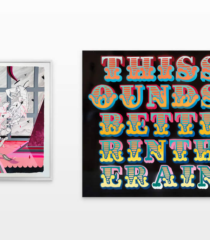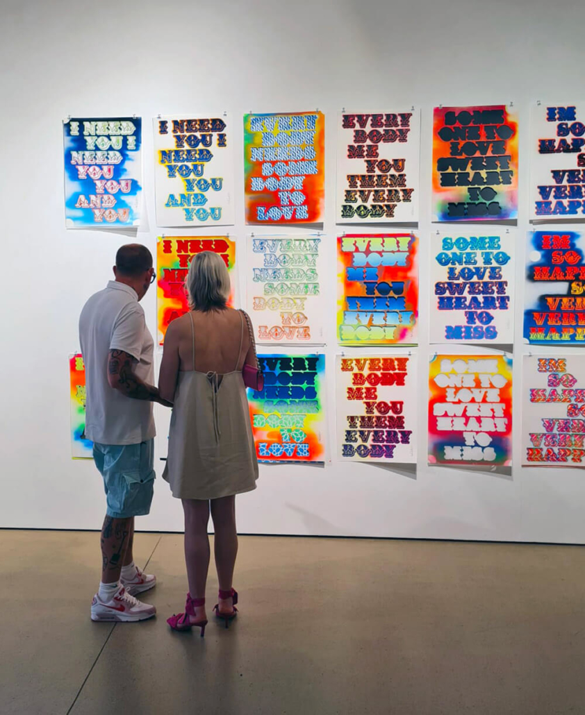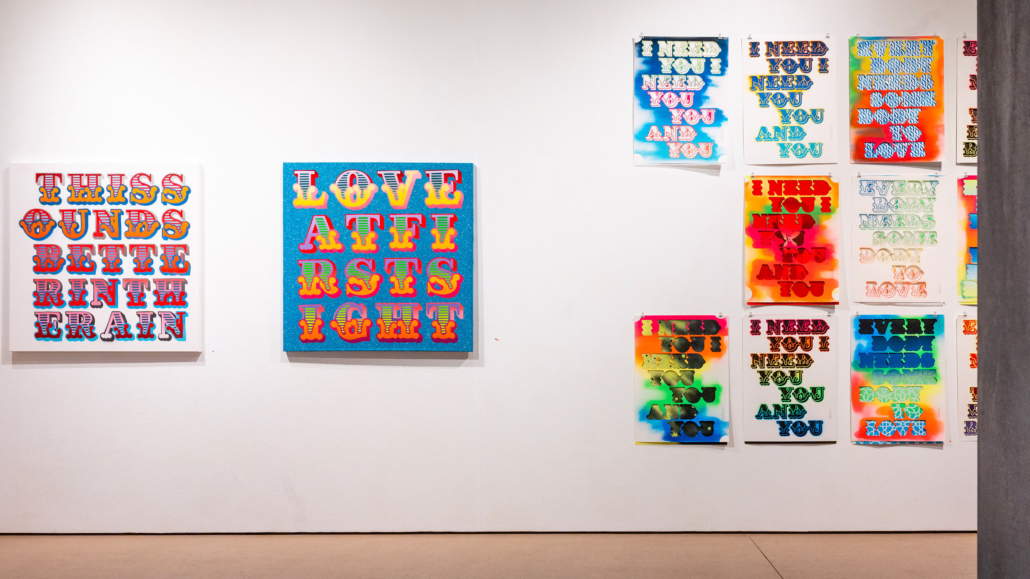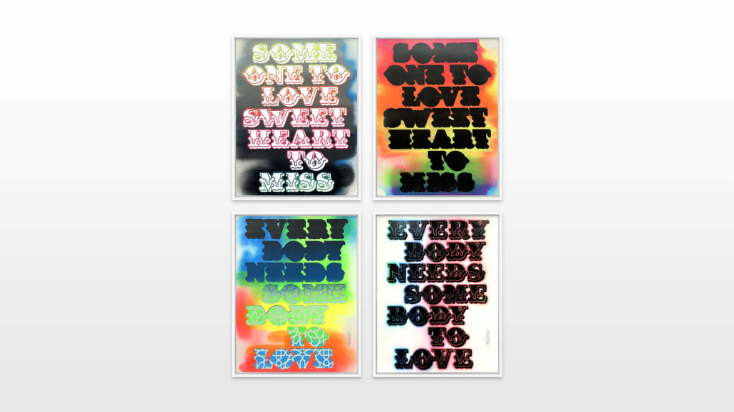 The exhibition consists of their different styles, including lettering, surrealistic pop, as well as graphic influences. The various artworks encompass first-class craftsmanship, a variety of techniques and intricate detail. Ben Eine inspired the choice of the artistis within the group show, because he admires and enjoys “hanging out” with them, metaphorically as well as literally. The artistic paths of the five world-renowned artists have all one common ground – graffiti.