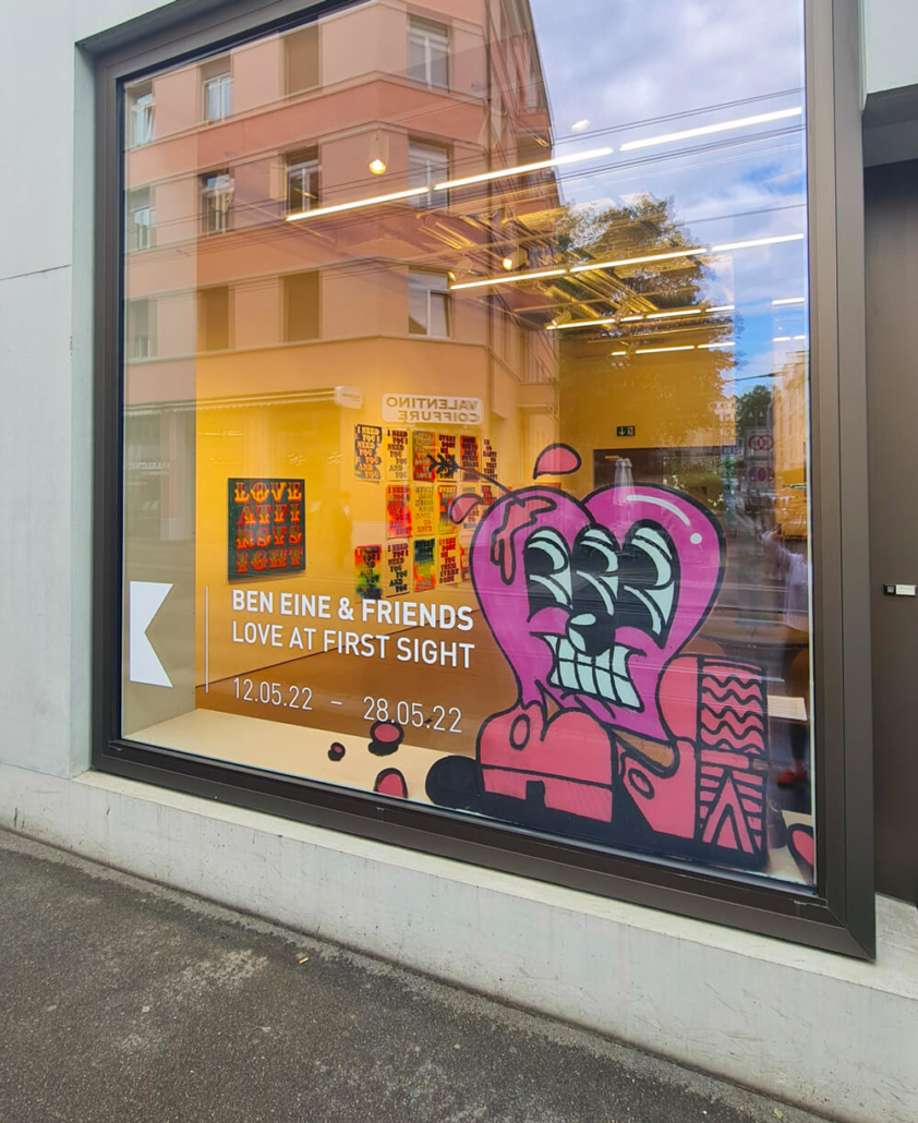 As part of the exhibition, Ben Eine invited an impressive ensemble of artists who feel the same way to Zurich: Voyder (UK), TeachDDS (UK), HowNosm (USA) and Sickboy (UK).