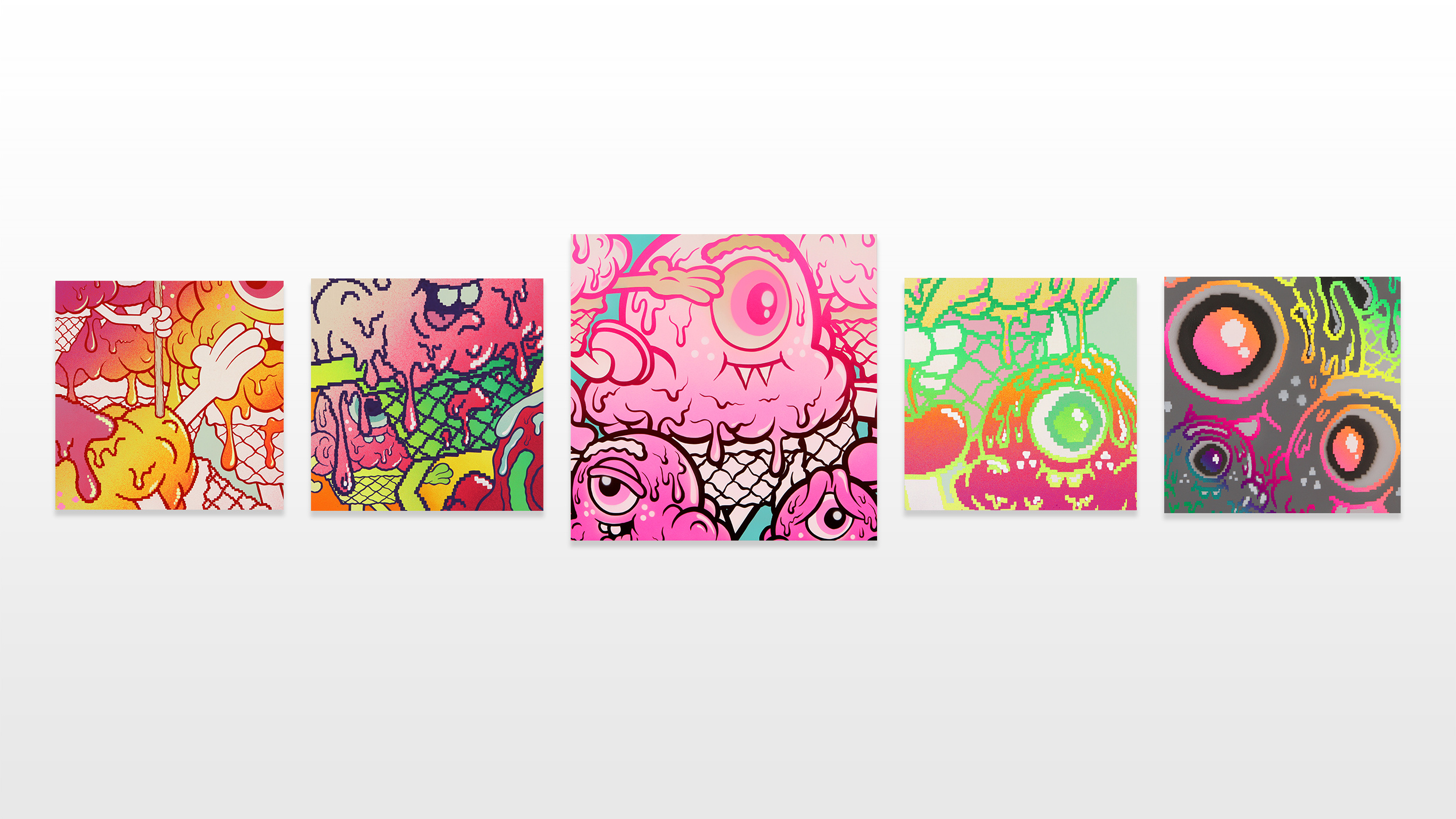 His meticulously executed paintings have been shown in galleries around the world; one painting hangs in the Bristol City Museum as part of their permanent collection. He’s also created a variety of limited edition collectibles including vinyl and resin toys, prints, shirts, stickers and two series of his ambitious trading cards/stickers called The Melty Misfits. He’s worked with some of the most recognizable brands such as Disney, Converse, Hello Kitty, Samsung, Nike, Coca-Cola and others. He’s created work in the streets for over 15 years. In 2015, Jeffrey Deitch ask him to participate in a mural project in Coney Island. He’s included in Banksy’s Oscar-nominated documentary: Exit Through the Gift Shop. And along the way, he’s cultivated an impressive social media following.