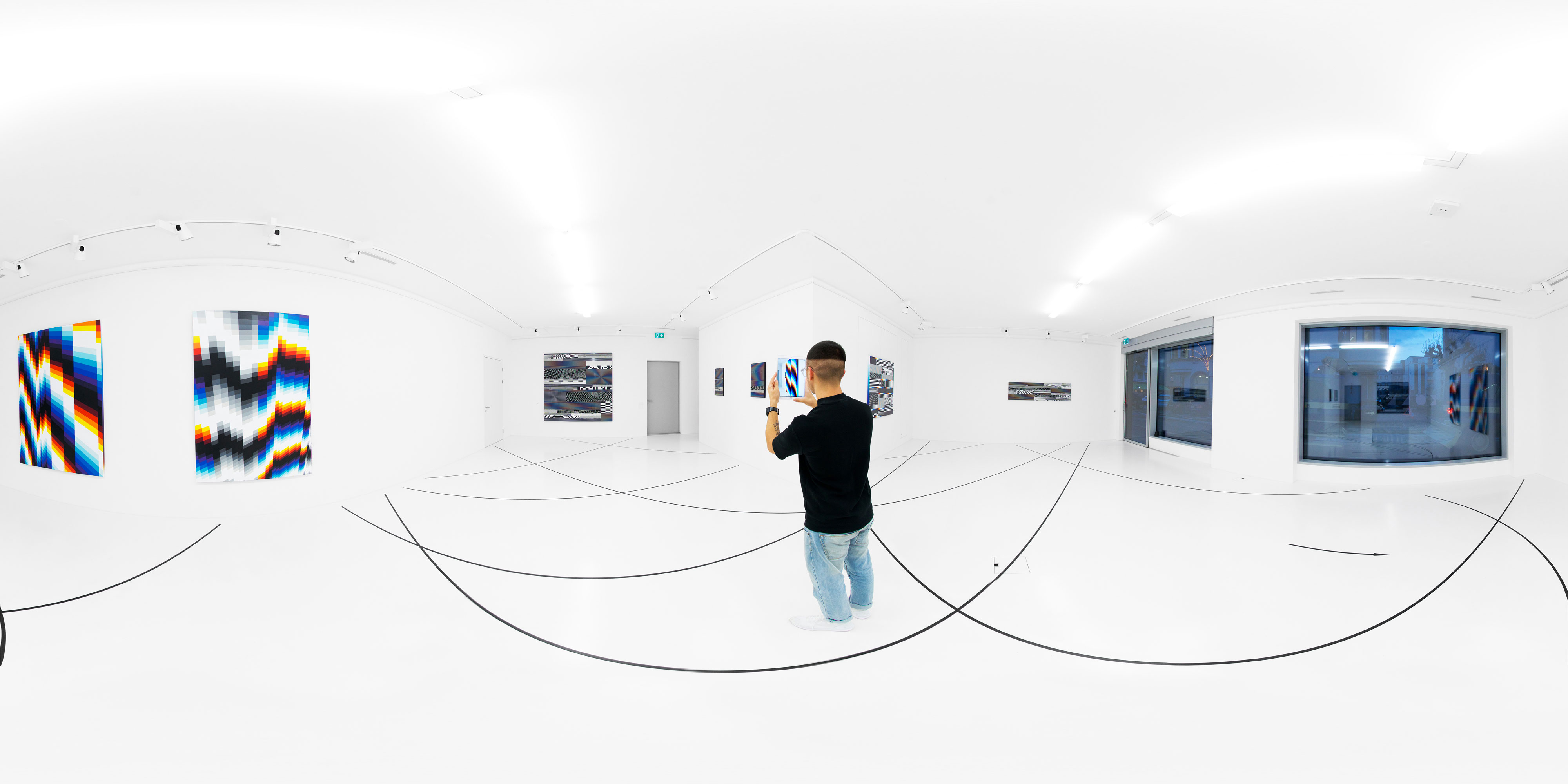 His body of work spans from graffiti to kinetic art. Apart from the different contexts his art is presented in, it is always defined by similar parameters, such as complementary color contrasts, gradients, geometrical abstractions and pictorial effects of illusion.