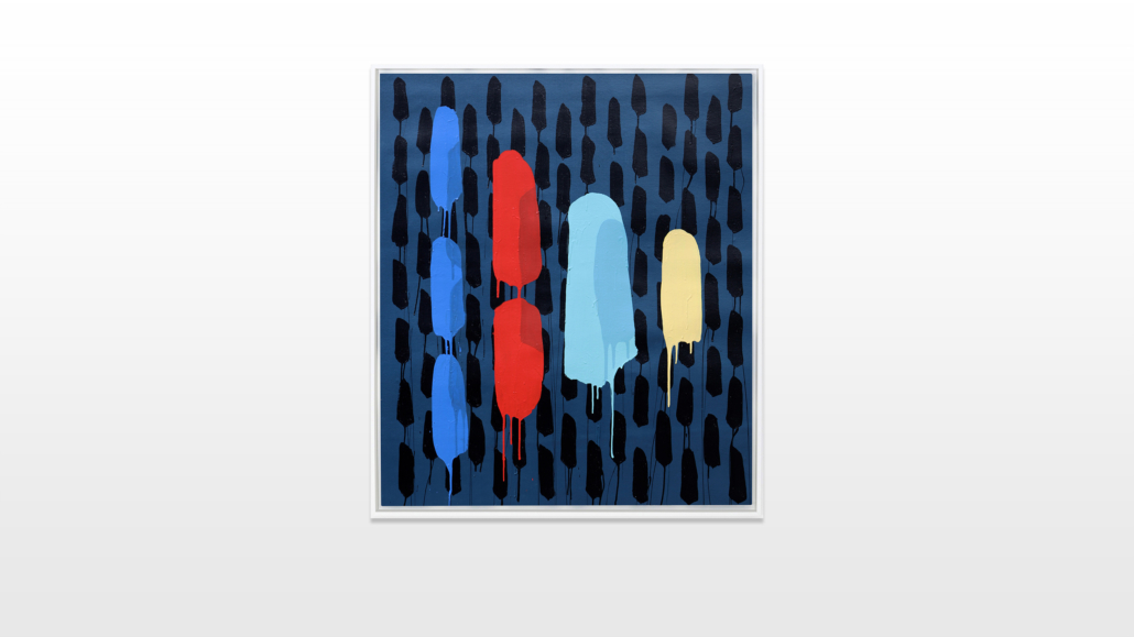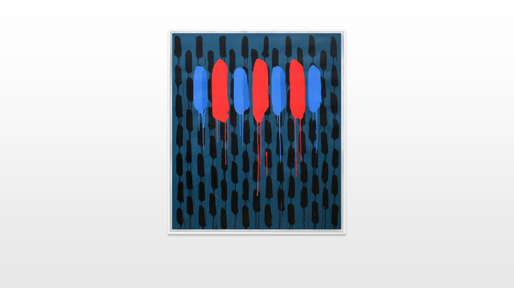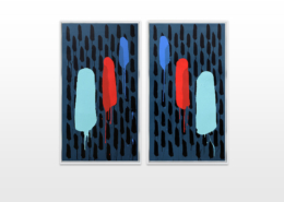 Every vertical brushstroke in Demarigny’s paintings represents one element that operates though the collectivity on the canvas. The main characteristics of his series are single vertical brushstrokes and the element of repetition. The artist is always surprised how the ingenuity of the individual brushstroke melts in a powerful expression. The very mechanic method of applying the brushstrokes then results in a synthesis that appears organic.