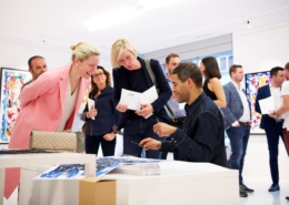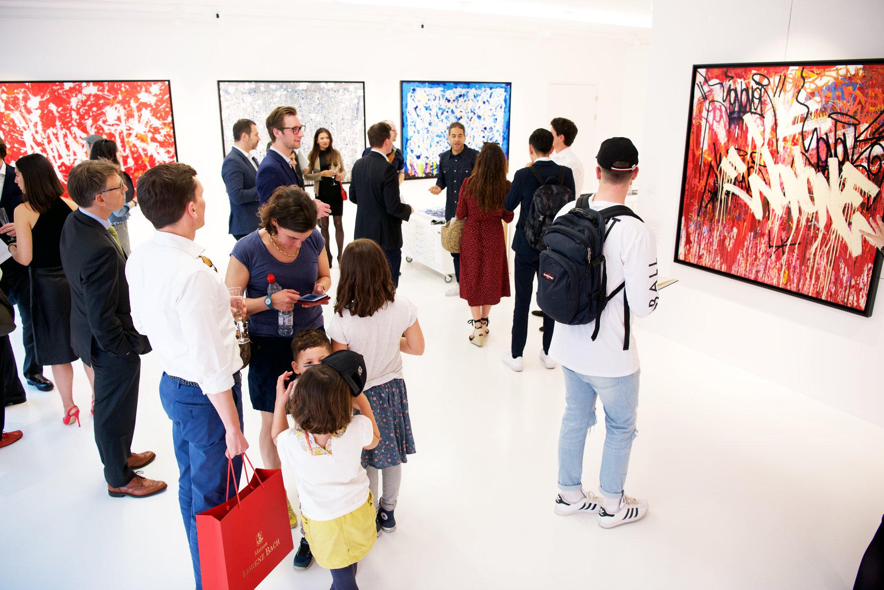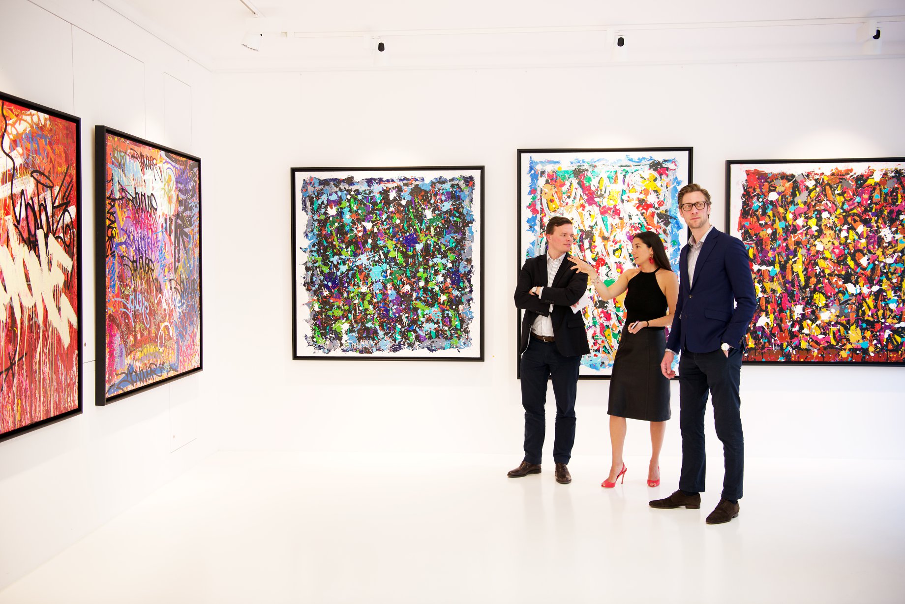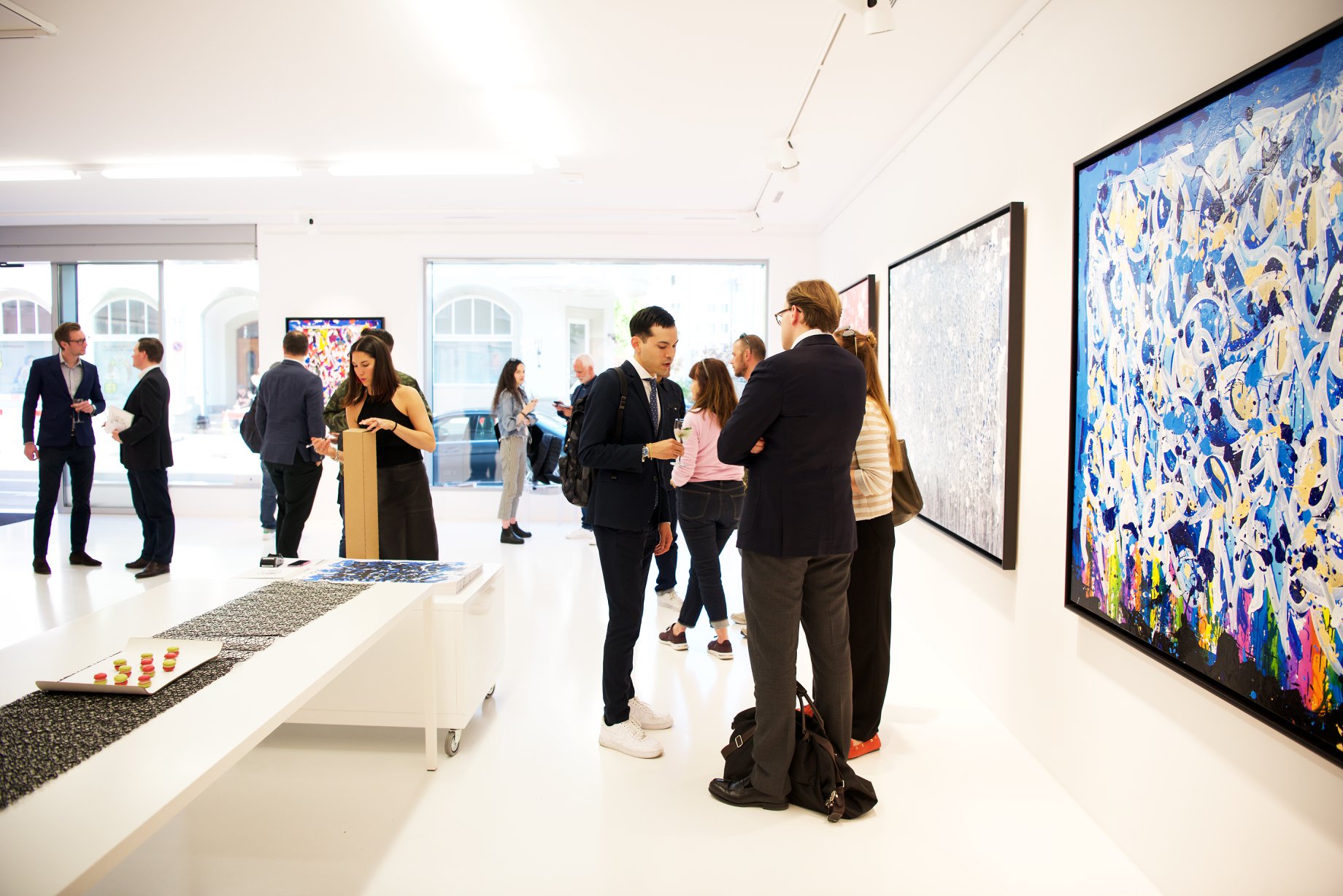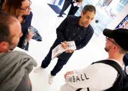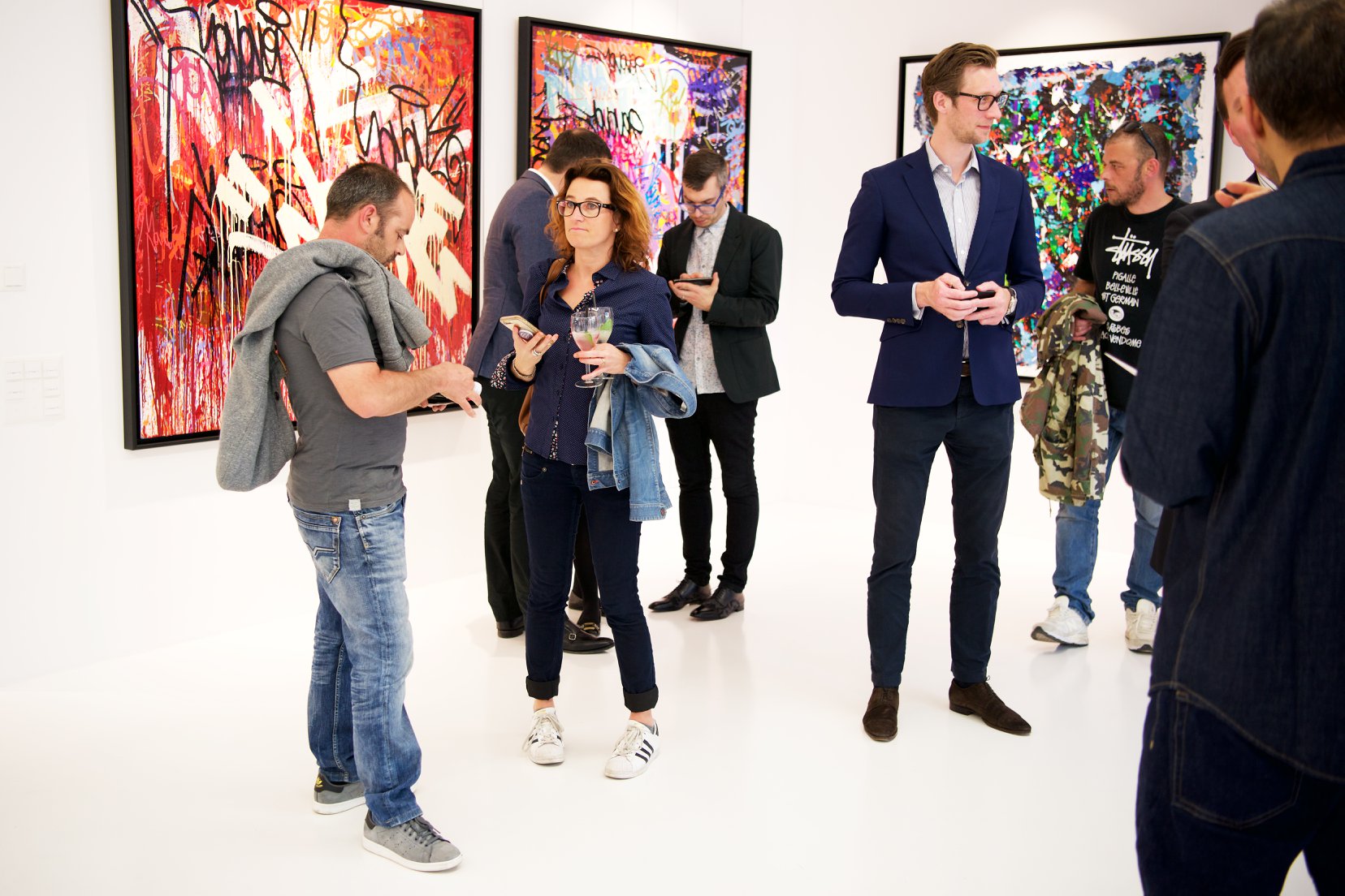 The works presented in the exhibition show the artist’s energetic, cryptic and polychrome canvases. Multiple layers and thick brushstrokes adorn his large-sized and explosive paintings. Profoundly rooted in the graffiti scene of the 1980ies he made excellent use of his obsession with tagging. What might appear as abstract lines, cryptic shapes or intentional drips of paint to the viewer, actually represent his own tag ‚JONONE‘, sometimes also in variations as ‚JONONE ROCK‘. At a closer look, letters and even his tag are recognizable. The regularity of repeating his tag over and over again, is not monotonous, in contrary, it is divers, complex and rich. Eventually the writing develops into an abstract pattern within the beauty of infinity.