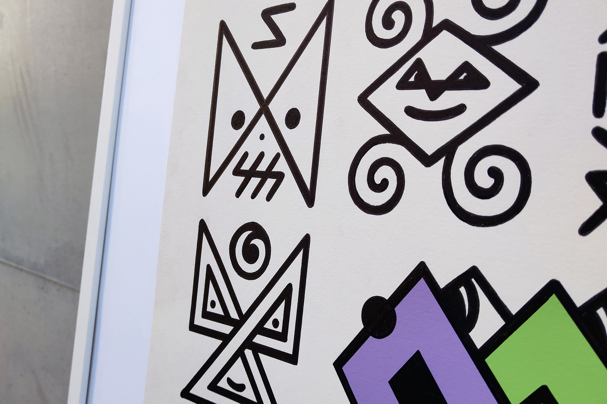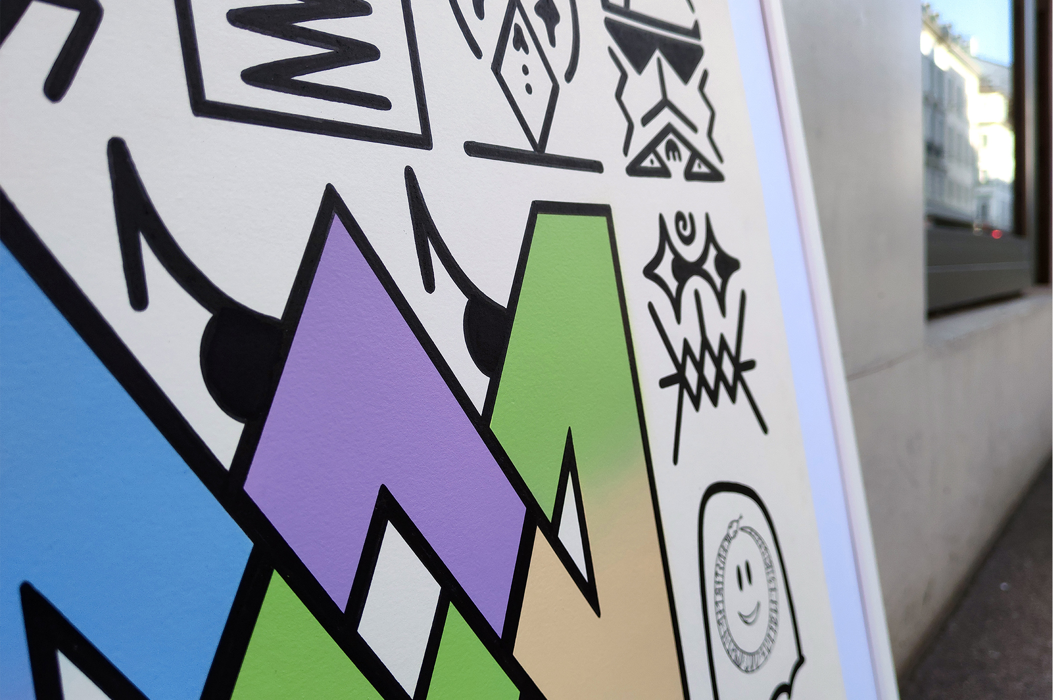 In addition to the boxes, the series features three drawings on paper. Honet’s art works are always intended to be highly meaningful and therefore have several levels of reading in addition to his iconic illustrative aesthetic. All of those reading levels describe in a suggestive or more concealed way his universe, his secret worlds, graffiti life and its adventures.