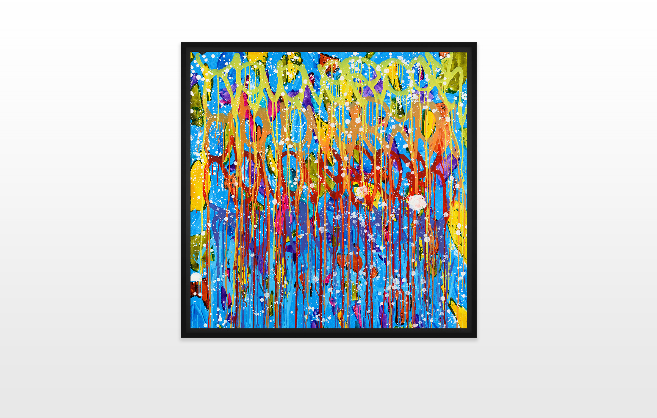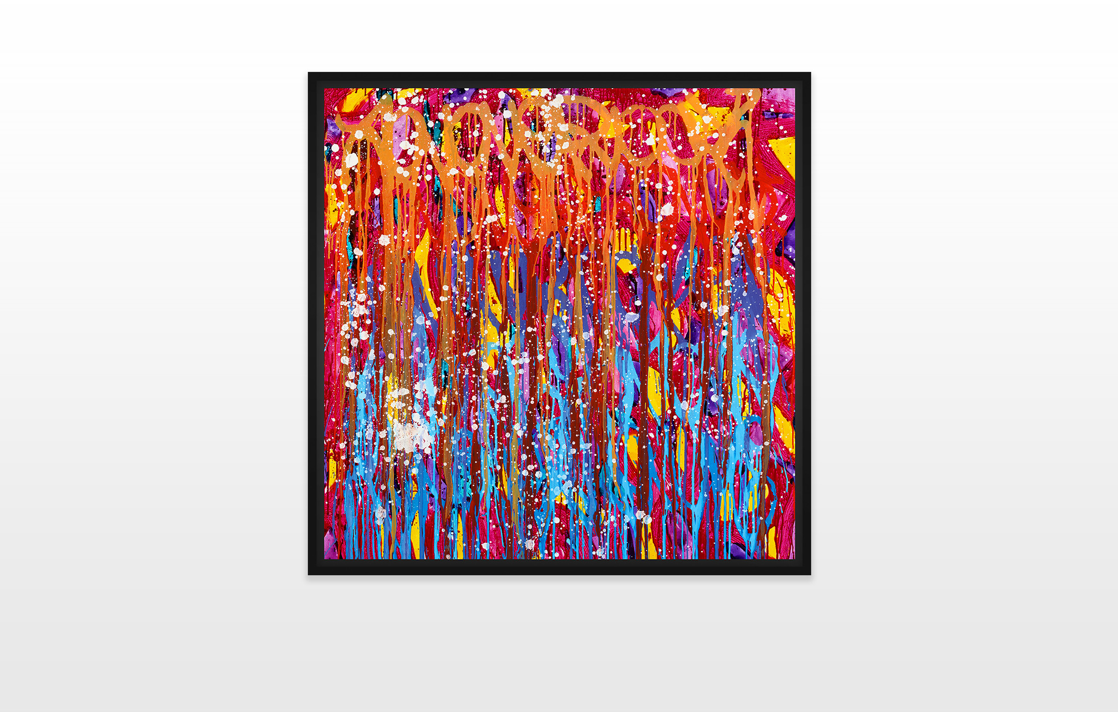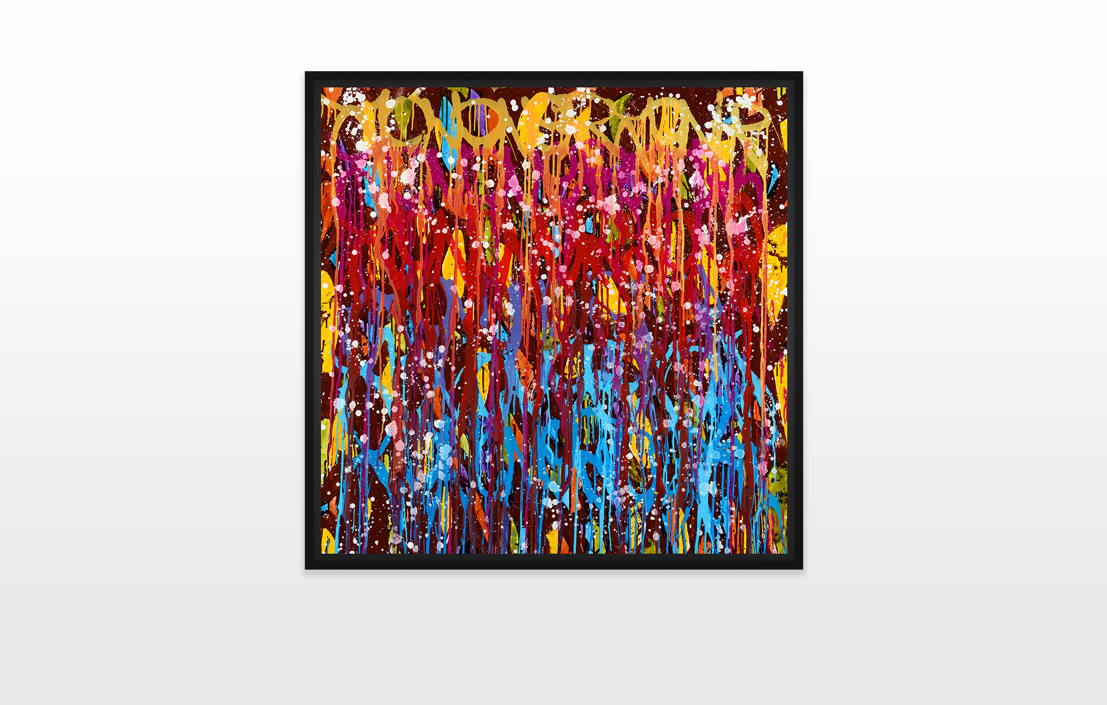 Looking back through the history of art, many artists, like Lawrence Weiner or Cy Twombly, made writing a part of their concept. But the artist that John “JonOne” Perello is most compared to is Jackson Pollock. Maybe at first sight the abstract aesthetics and the energy of the canvases are comparable, but in their details they are very diverse. Jackson Pollock did not intend to illustrate writing, as his artistic background of abstract expressionism derives from the New York School in the 1940s. As an autodidact John “JonOne” Perello has had no fine arts education. Through the obsessively repetitive writing of his tag, his roots in graffiti are still evident.