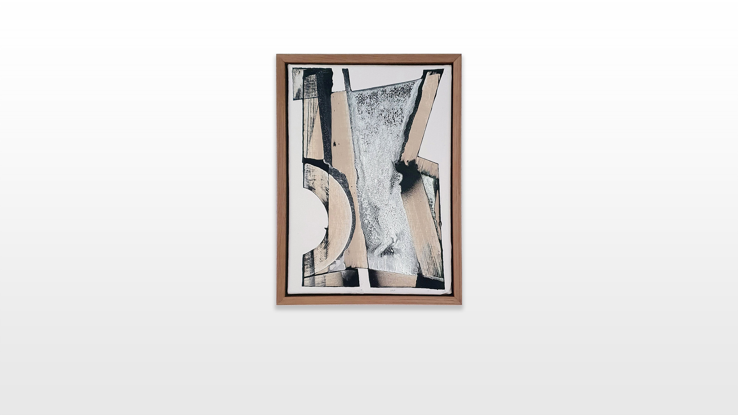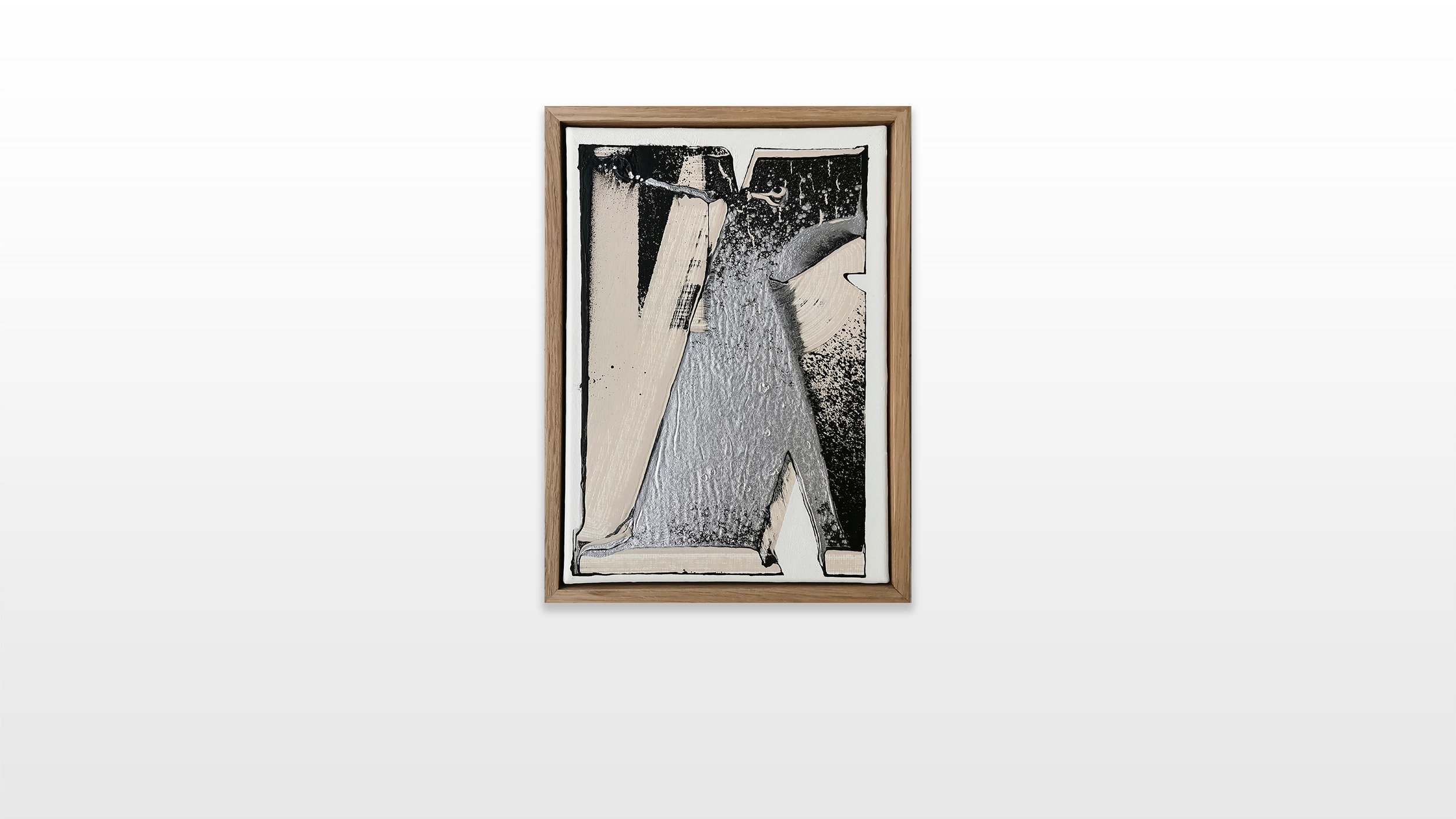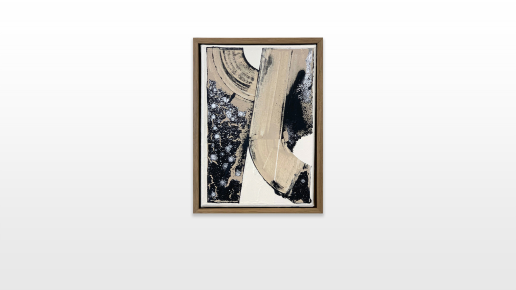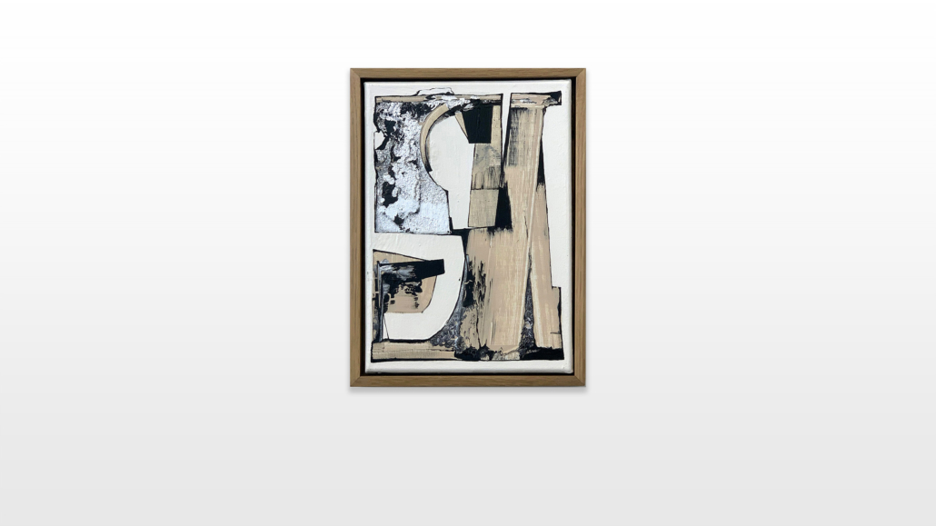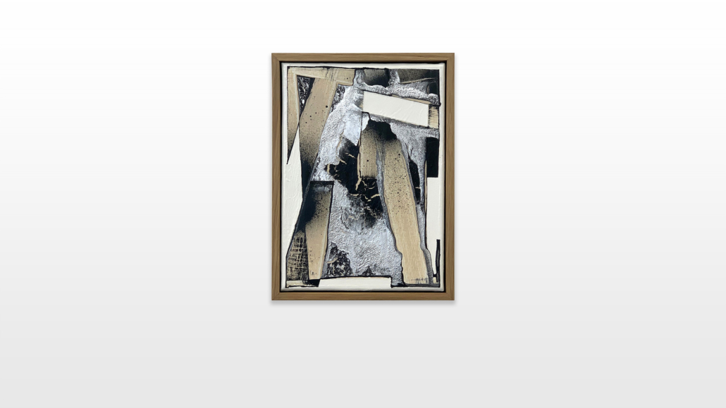 The color choices of his current series are directly inspired by graffiti. Beige represents restoration paint, whose neutrality is particularly interesting to the artist. In fact, he realized that the neutral colors, beiges, off-whites and light grays are associated in “our” (western) latitudes with cleanness, save environment and high living standard, which additionally acts as societal and cultural marker. The seemingly neutral non-colours are also used by cleaning institutions to paint over graffiti or tags. Chrome is an obvious borrowing from graffiti. Its ability to cover all types of surfaces as well as its silvery, light-reflecting shade gives every graffiti an incomparable visual effectiveness. Therefore the chrome and black color combination has imposed itself as a must. The white backgrounds in L’outsiders art works emphasize the architectural balance between his forms and shapes.