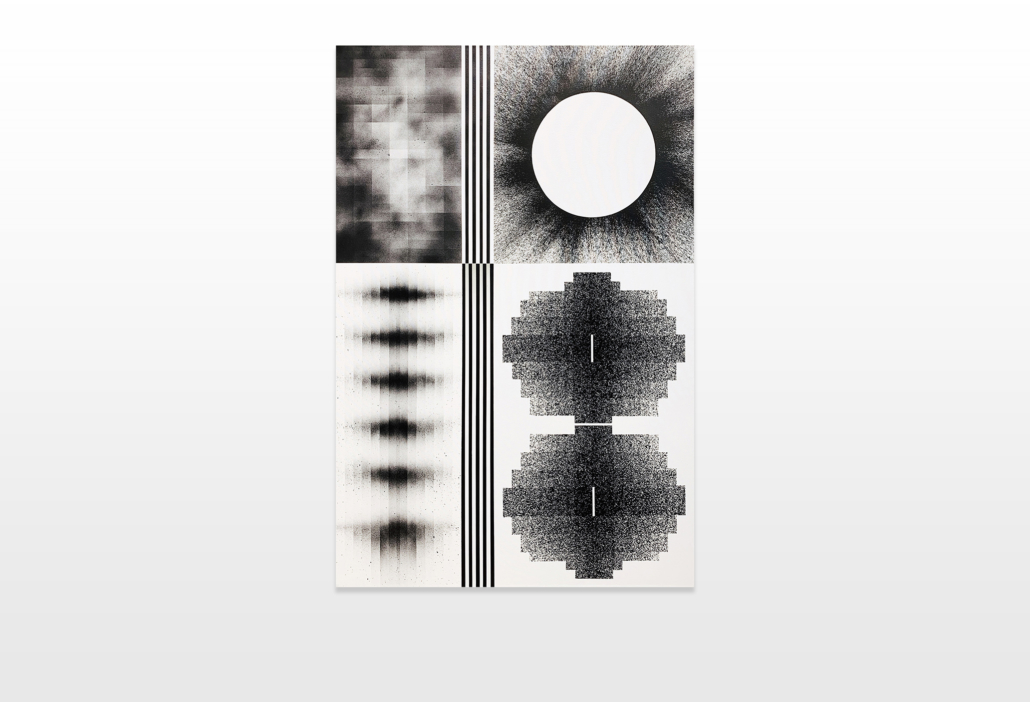 In this series especially the subject of singularity was significant to L’outsider, because in his opinion there are parallels to the intentions of every artist. He sees the singularity and individuality of an artist as the ultimate goal. In his case he composes paintings by splitting the composition into an accumulation of different sensations or experiences of his life, that in the end are juxtaposed and dialogue together.