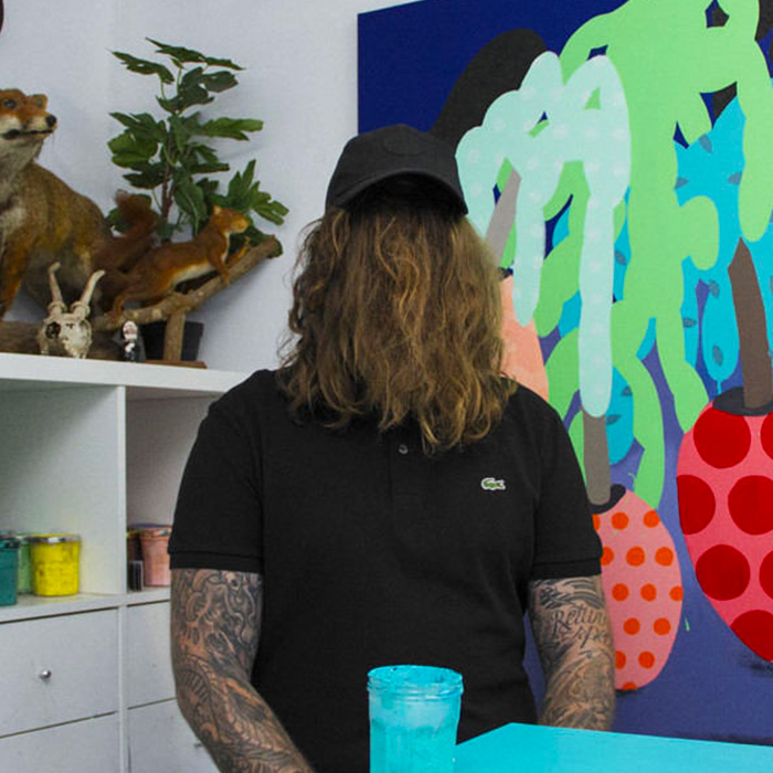 His surreal and unique world of eclecticism leads him to important collaborations, such as being an ambassador for Converse Cons in 2014 or designing the iconic Timberland Yellow Boot in 2016. His exhibitions in Paris, Zurich, Munich and other European cities continue to gain attention.