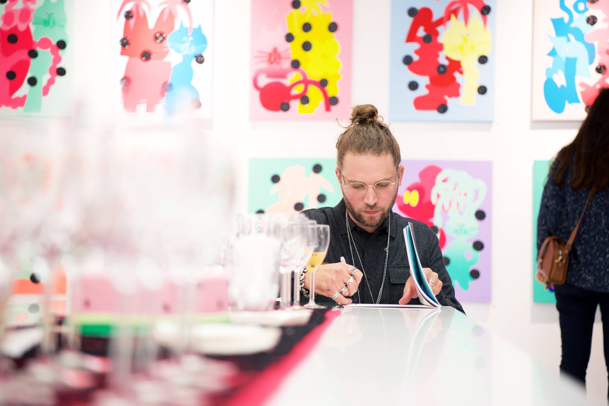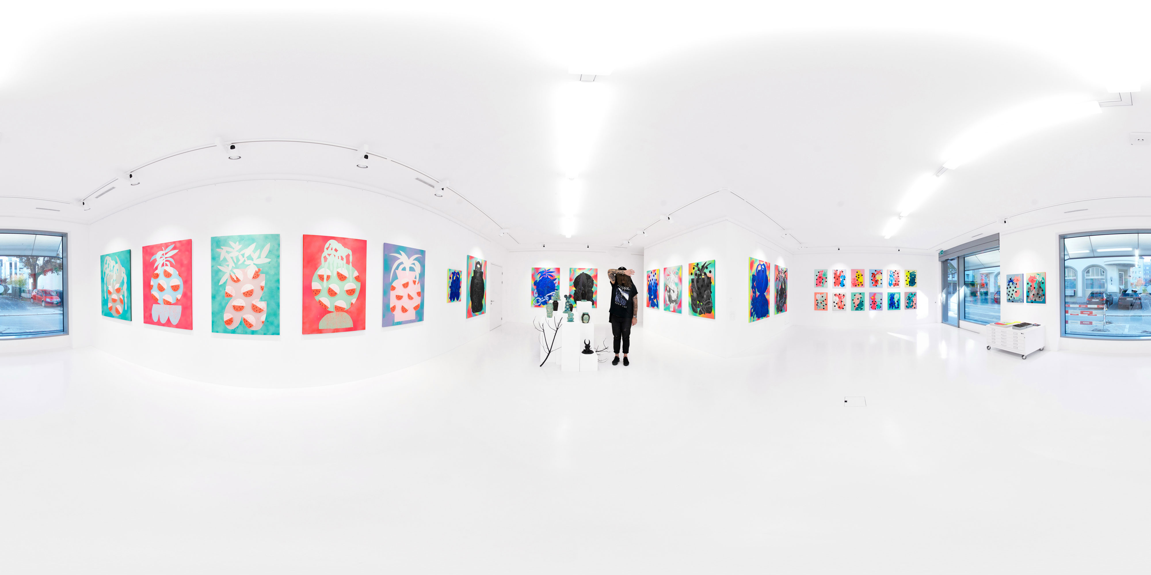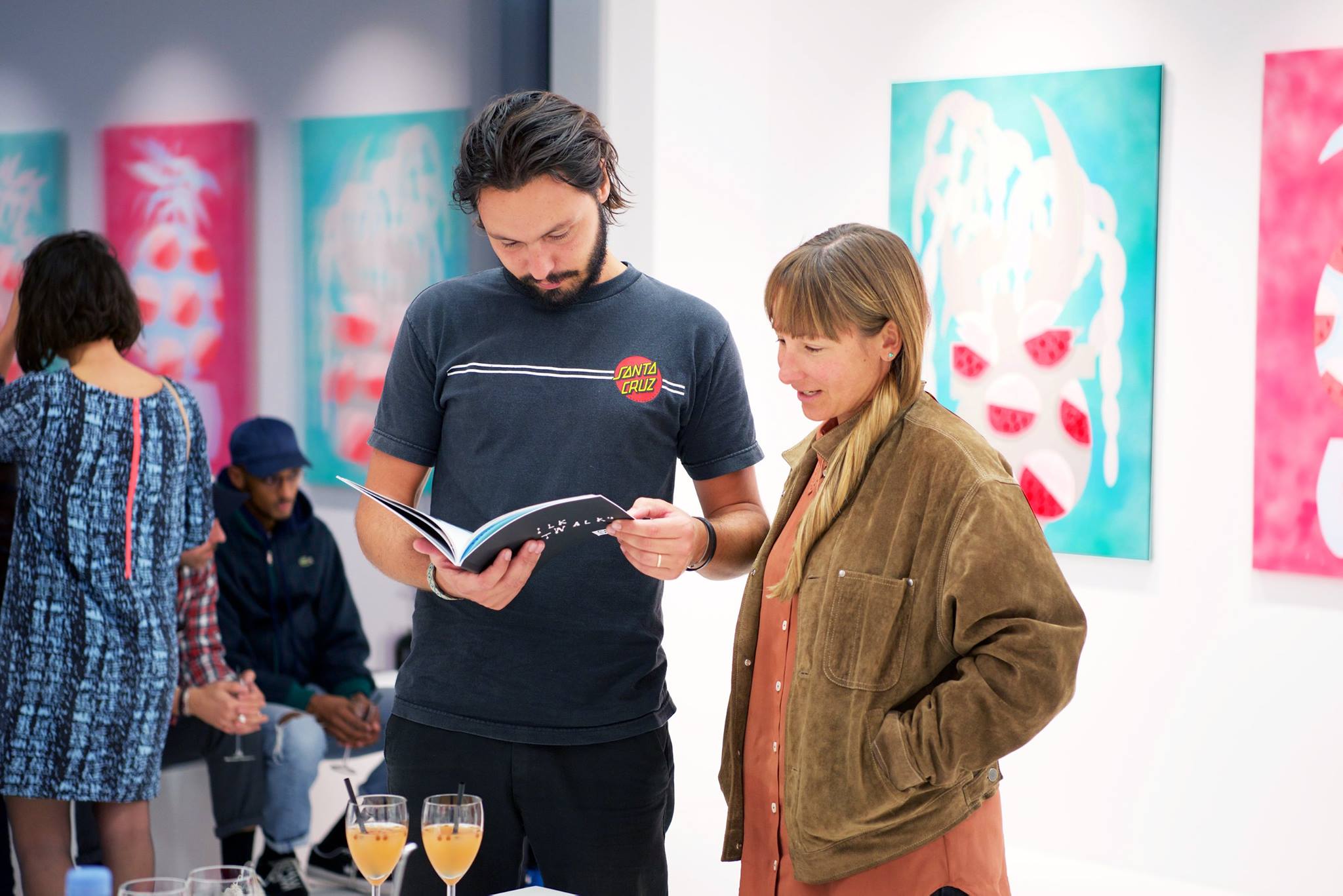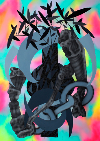 The two-folded title of the exhibition reveals the multi-interested and creative character of the artist. Not only cats as well as fashion but also… watermelons, plants and chains are part of Ilk’s visual repertoire and creative practice. Ludovilk Myers’s symbolic language merges elements of his daily life and his personal interests, which gives his artworks an organic yet graphic, surrealistic and psychedelic aesthetic.