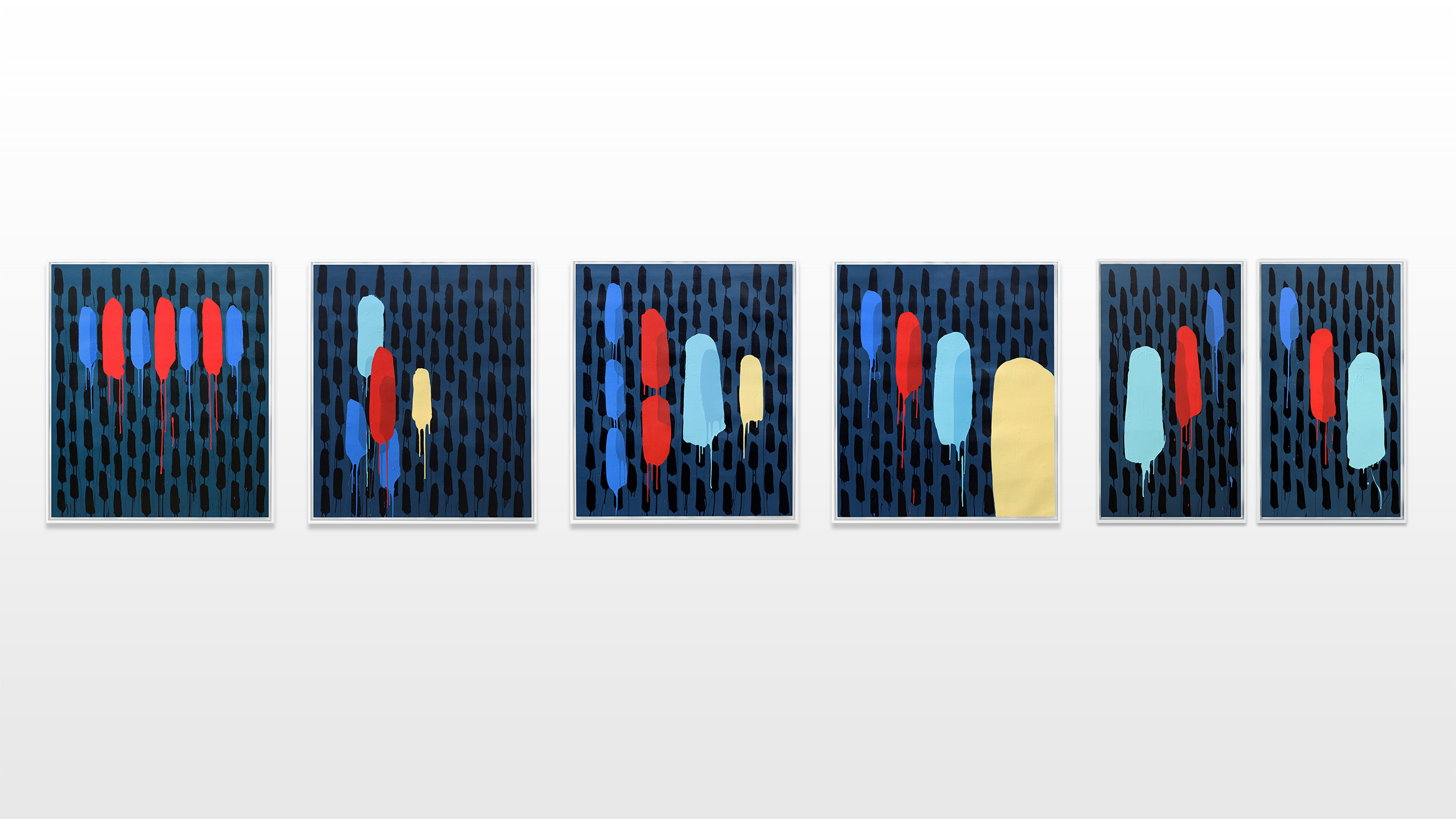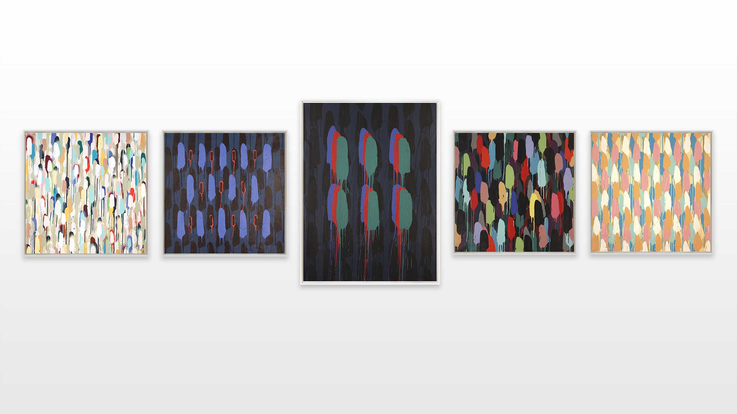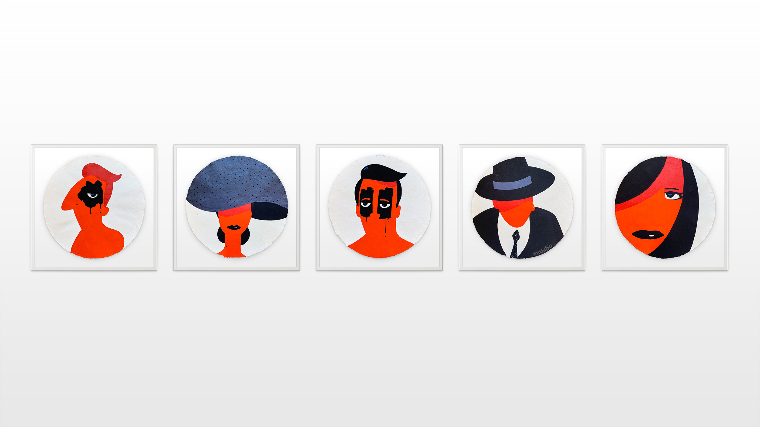In 2015, Mambo started with a new series of abstract paintings. When Mambo confronted the public with his very new and different approach he decided to sign them with his first name, Flavien, because they appeared exceedingly different from his well-known paintings. The technic is a result of a long-standing study and experience in art, but also influenced by the assistant years to Sol LeWitt, in the mid 90ies. Going from expressionist to optical and minimal art, Mambo enjoys, through Flavien, experimenting different versions of styles that he admires. Artists that he admires and includes in his art practice are Franck Stella, Yayoi Kusama, Ellsworth Kelly, Piet Mondrian and Jackson Pollock.