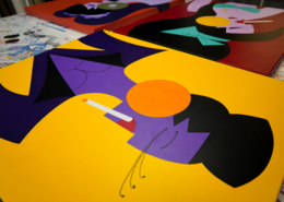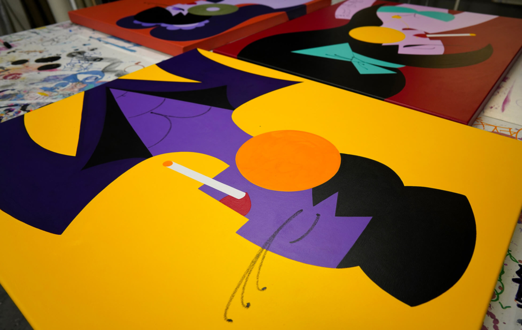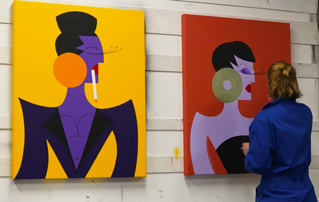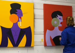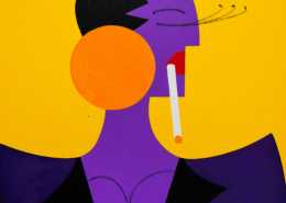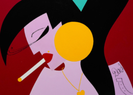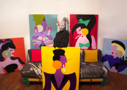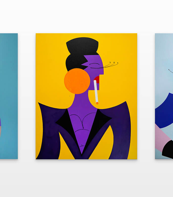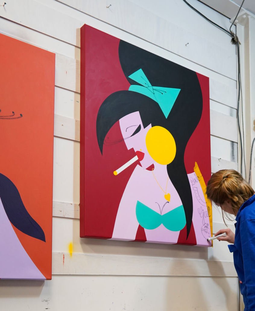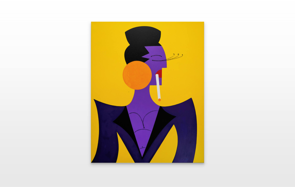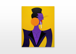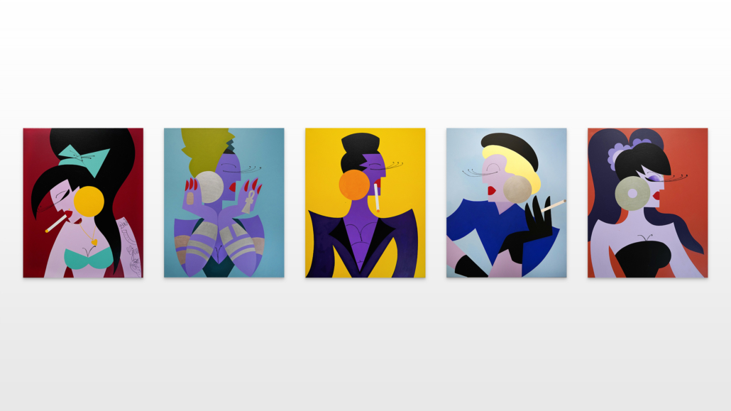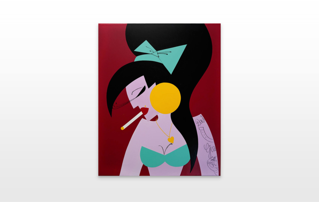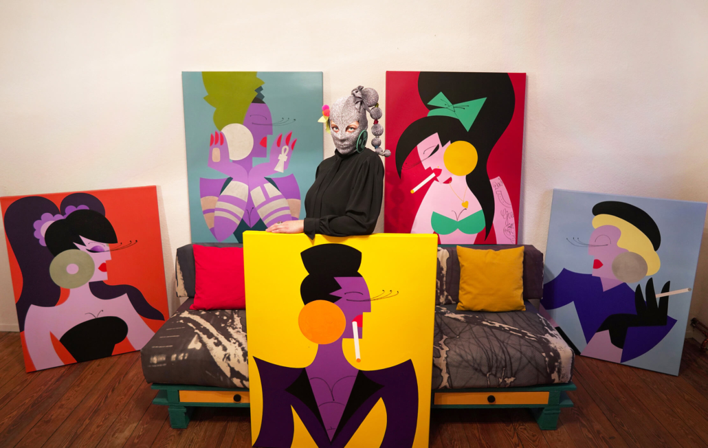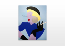 In this series of five paintings, Nana transforms into female stars from music history and reaches new levels of her personality. She represents iconic divas through striking looks, which are emphasized by the choice of colors and the composition of the image. The icons featured in the series are Grace Jones, Erykah Badu, Nina Hagen, Marlene Dietrich and Amy Winehouse. Mina Mania consciously chose strong female characters with a inspiring story. A diva usually describes an outstanding women who is aware of her uniqueness and celebrate this role assigned to her extensively. Mostly, the iconic look or expression of a diva is a clear statement against common role models of women, a rebellion, a demarcation and underpinning of the personality.