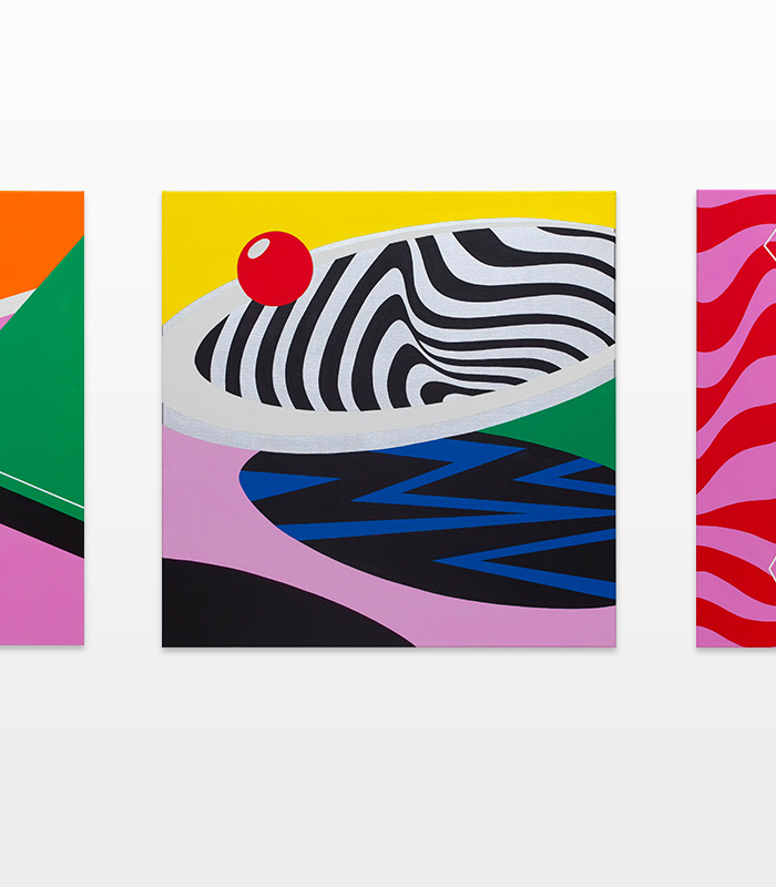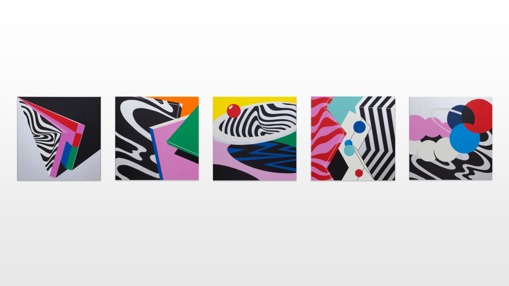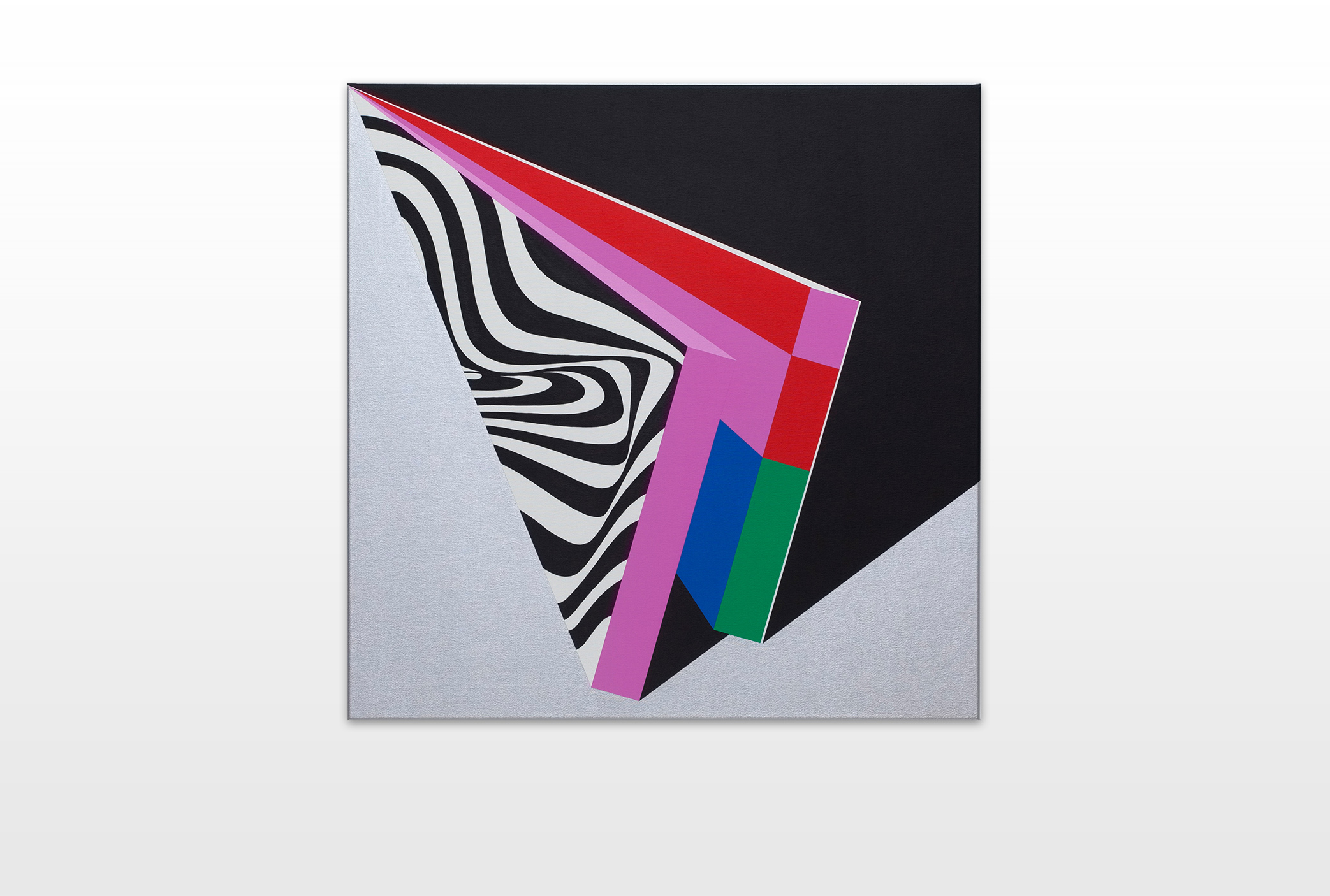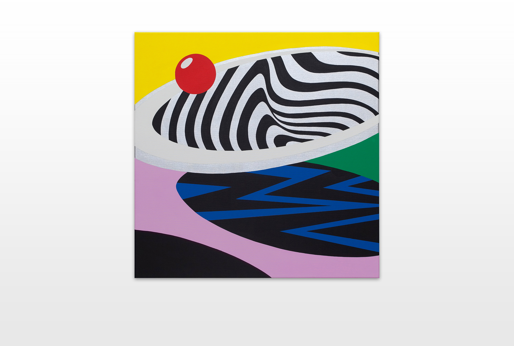 Moritz Green’s mixture of his graffiti roots with graphic and fine art is compelling. His artworks still carry the roots of his urban experiences, but they are no longer directly connected to letters. Instead of letters the artist uses linear, hard-edged and precisely painted shapes that are sometimes interrupted by organic and dynamic forms.