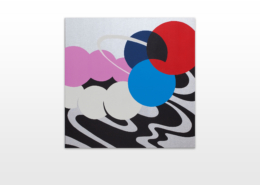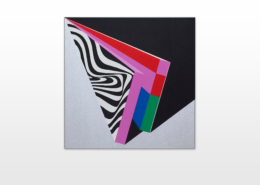 Nevertheless there are some noticeable references to the art of graffiti in Moritz Green’s art works that he rediscovered while creating the Chrom-Quadrat. The artist revisited old footage where he hit on the well known color combination: black and chrome. As it turned out the shiny and silvery chrome shade became the ideal tone to combine with other dazzling colours as well as black and white. Moreover, he reinterprets the fill-ins, which are an extremely important feature in the graffiti tradition. Sometimes the area are filled with polka dots, bubbles, color gradients, straight and curved lines. The appearance of the fill-ins varies from piece to piece, sometimes they appear rather flat and bold and sometimes they even create a depth effect.