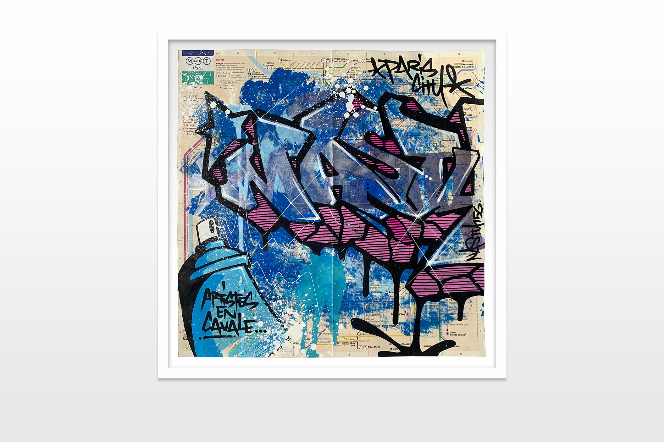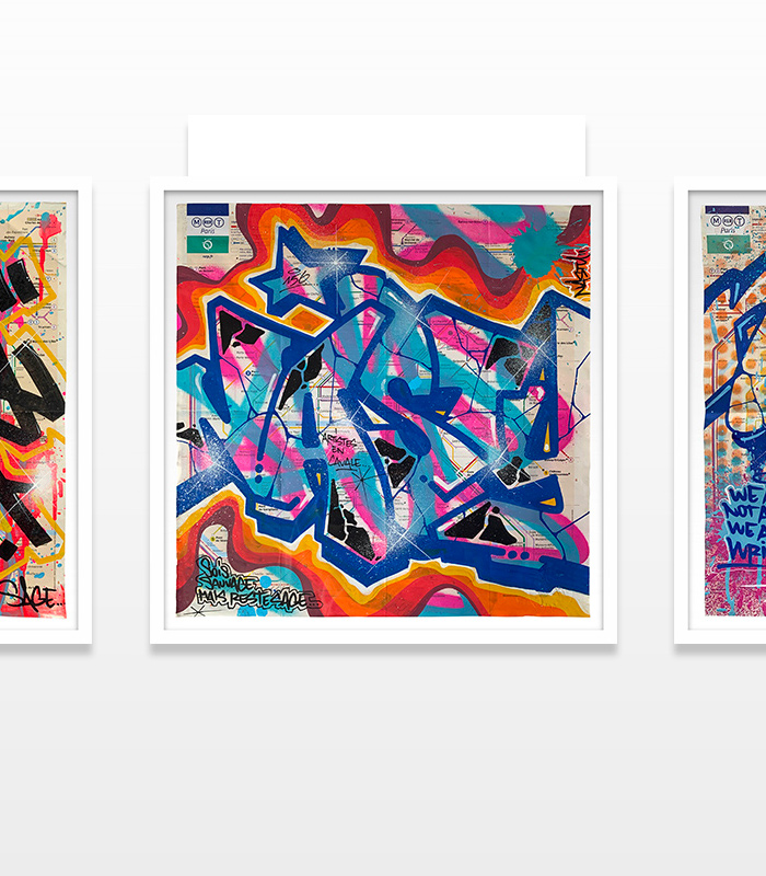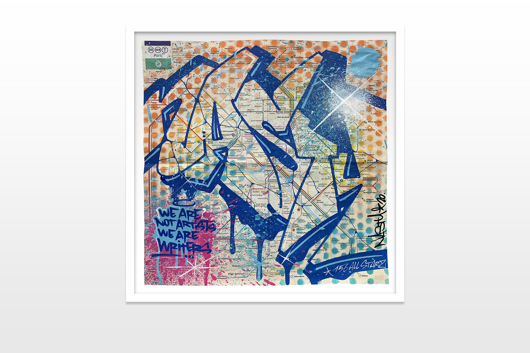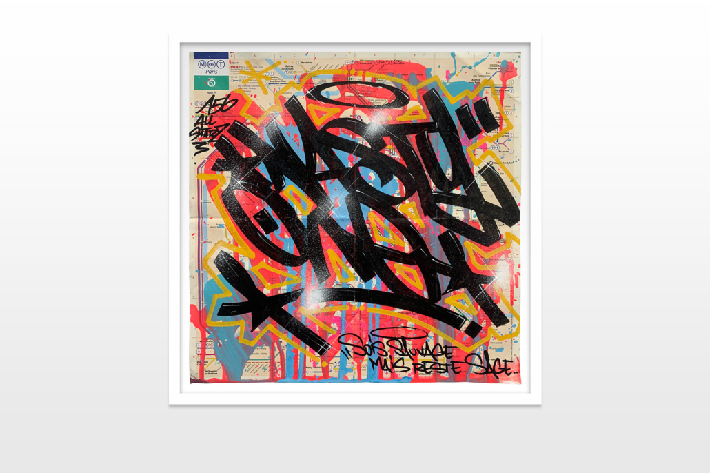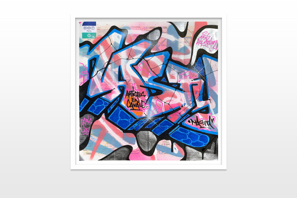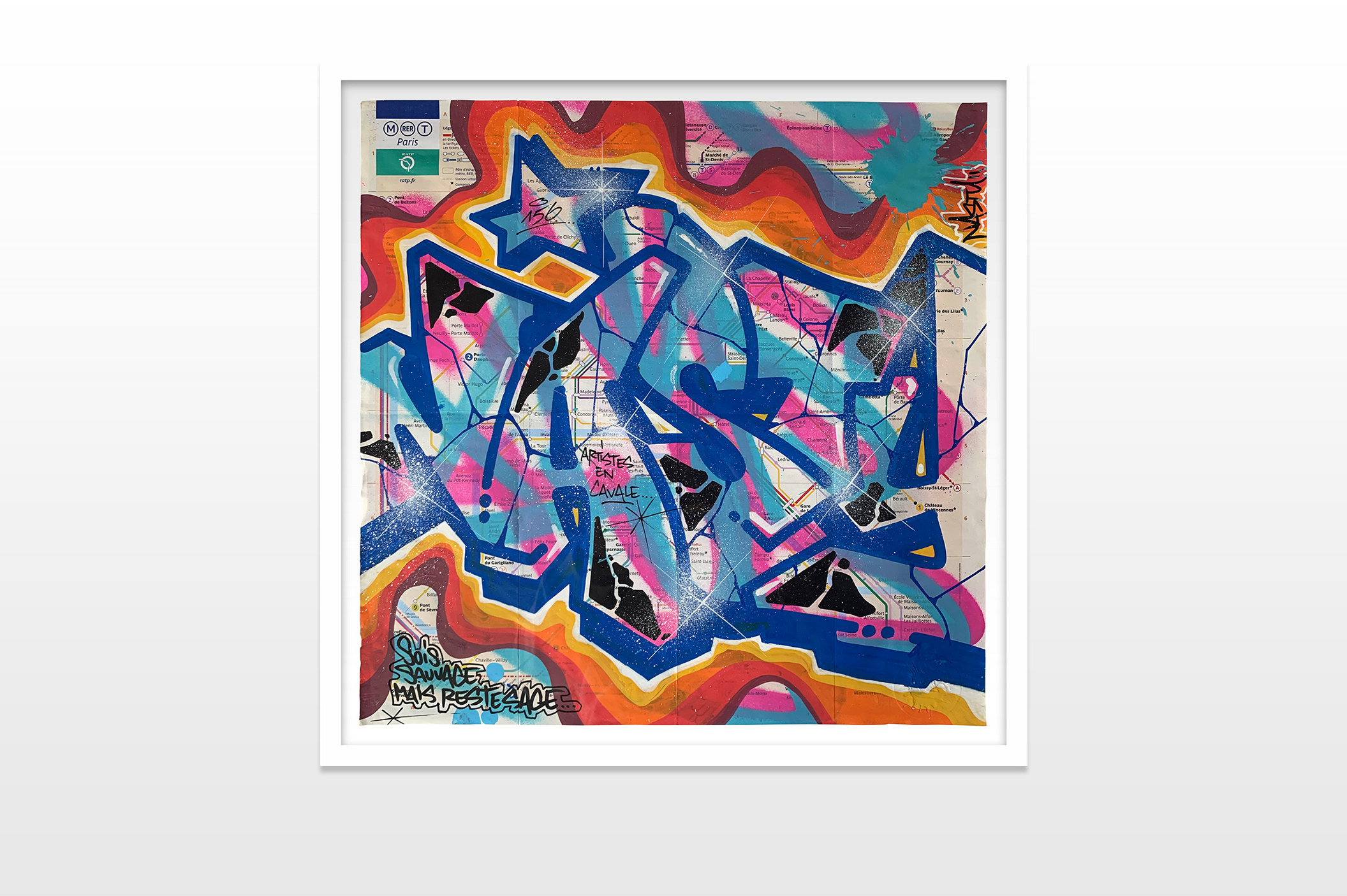 Nasty’s art works are a homage to art in the streets as well as a reflection of his own artistic liberty, in terms of movement, colour, style, imagination and, of course, materials. A new series of subway maps entitled Between The Lines will be exhibited at Kolly Gallery from 13th to 18th April 2020.
