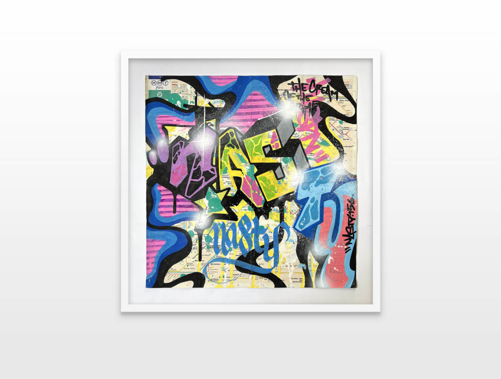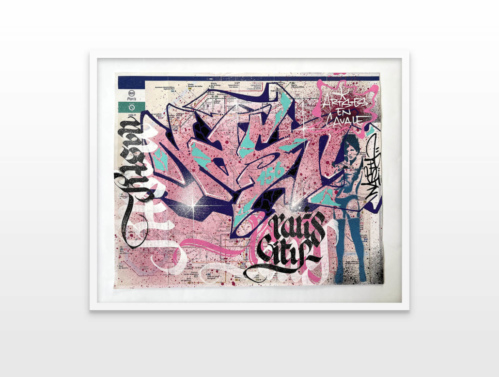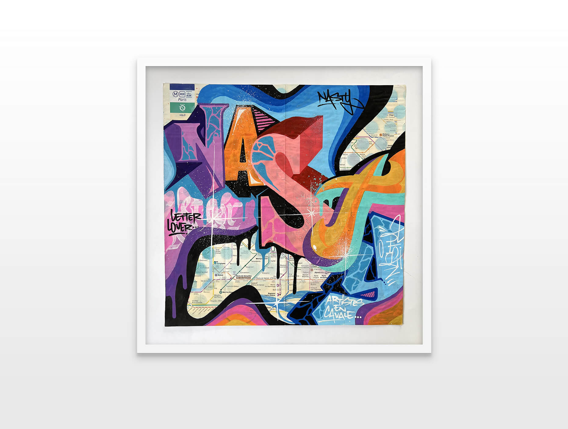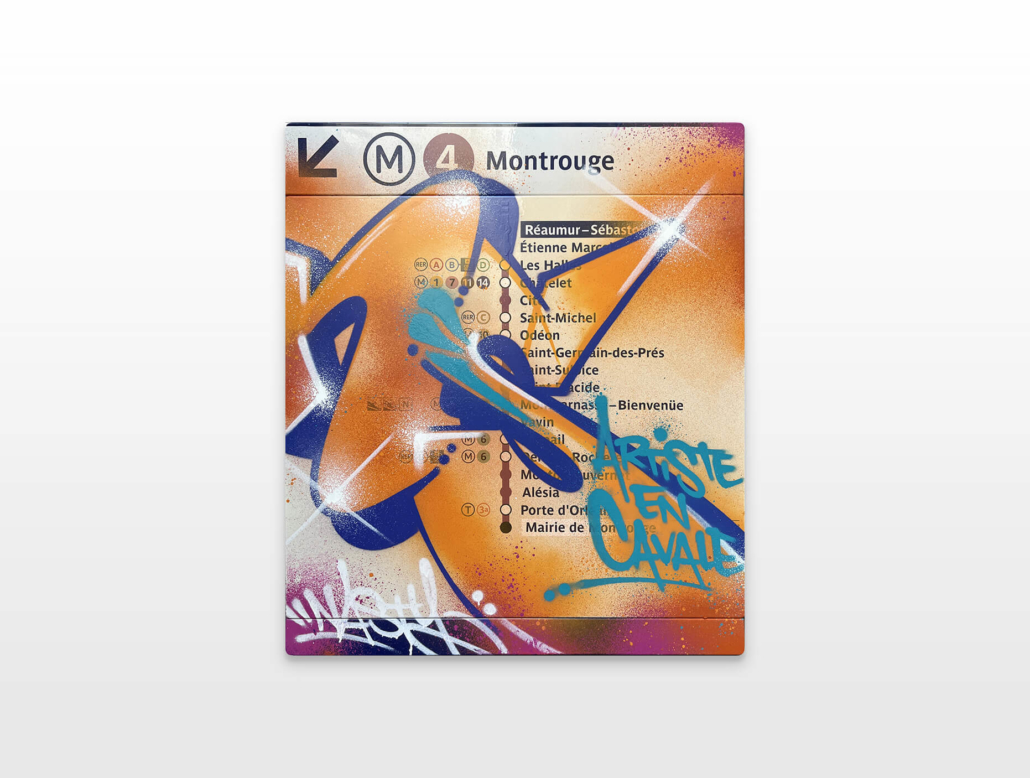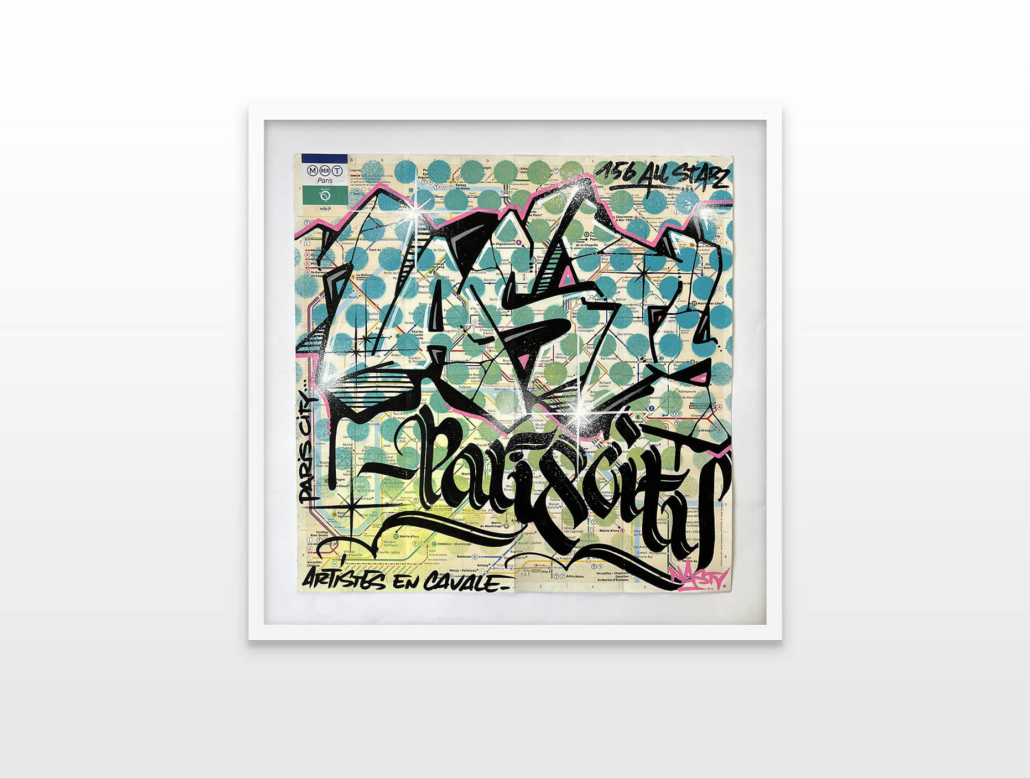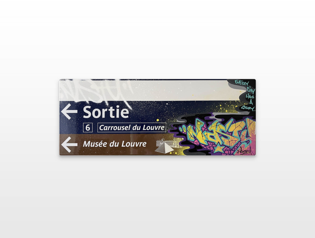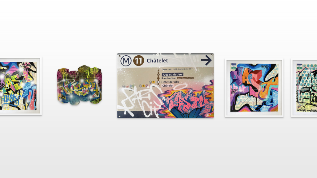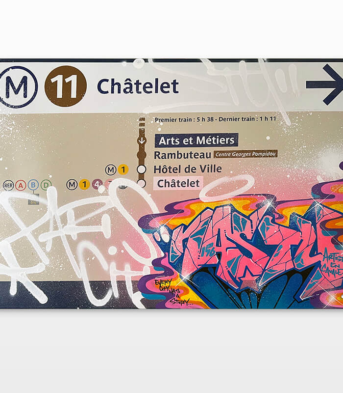 Nasty finds his creativity in all the cities, but especially Paris has a unique story for him. This is where he began with spraying metro plans, aluminum plates and ceramic tiles all, from the Parisian subways. This exhibition is revisiting various different styles of Nasty.