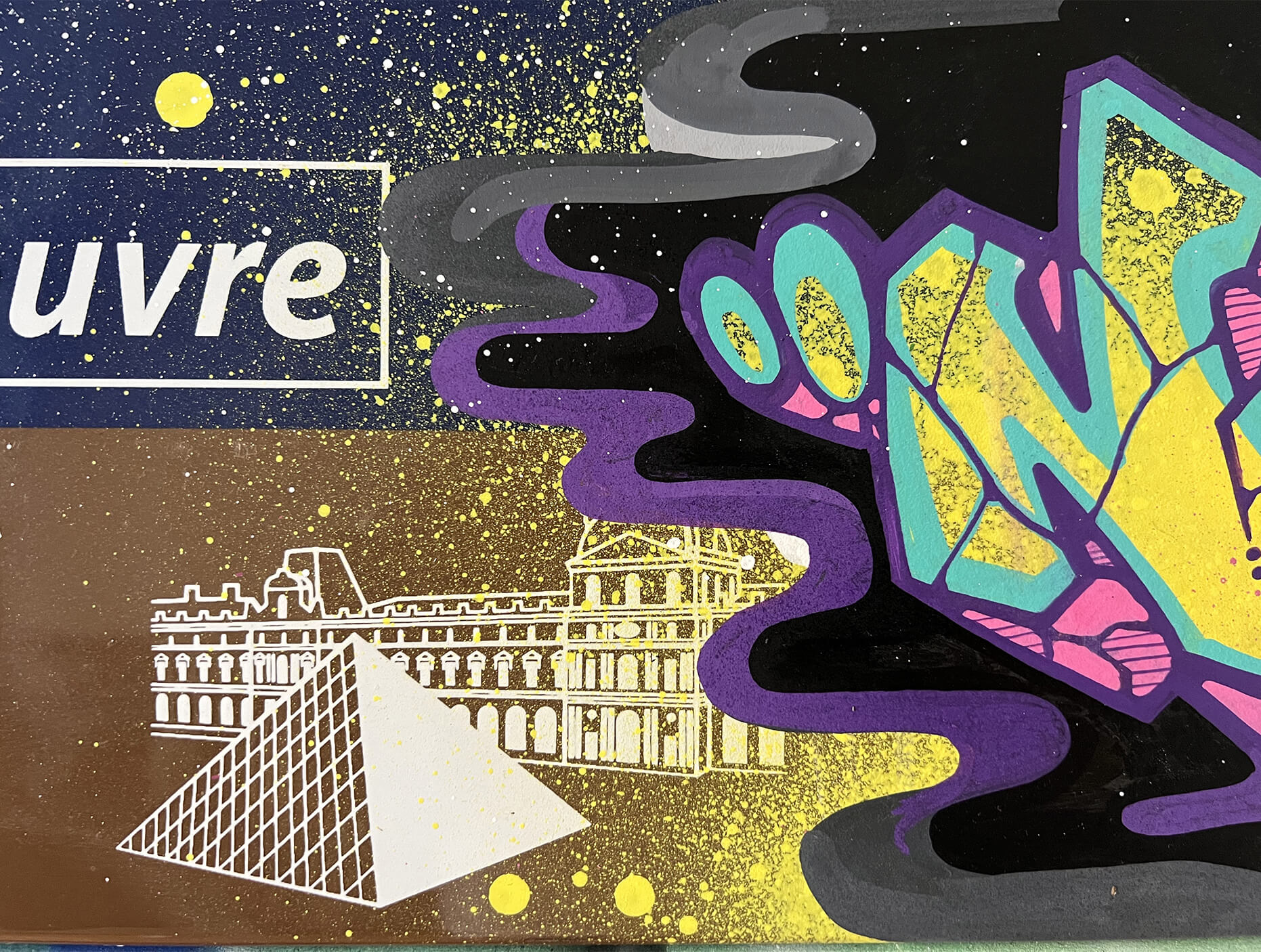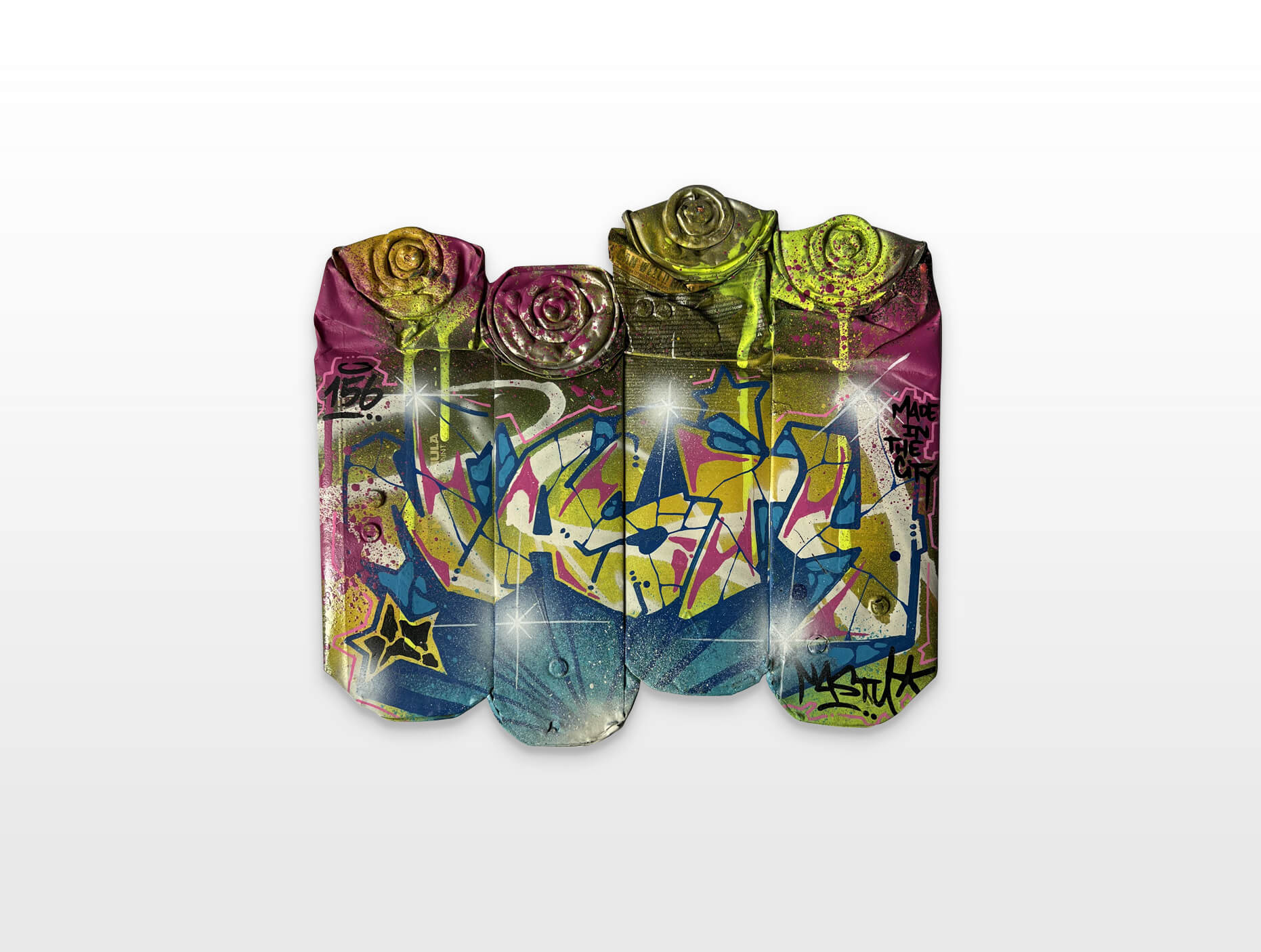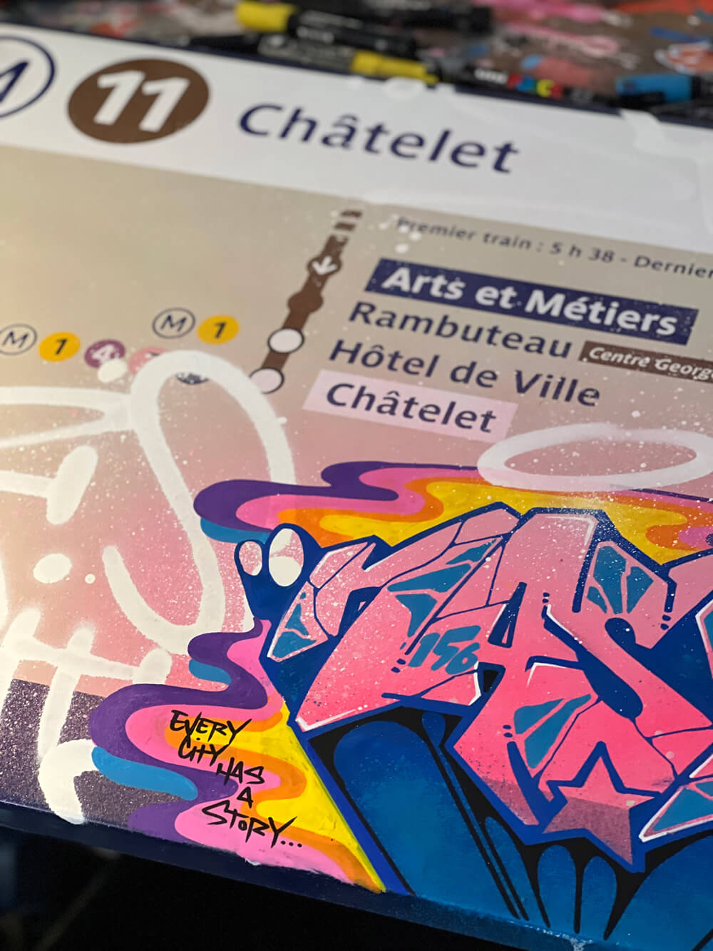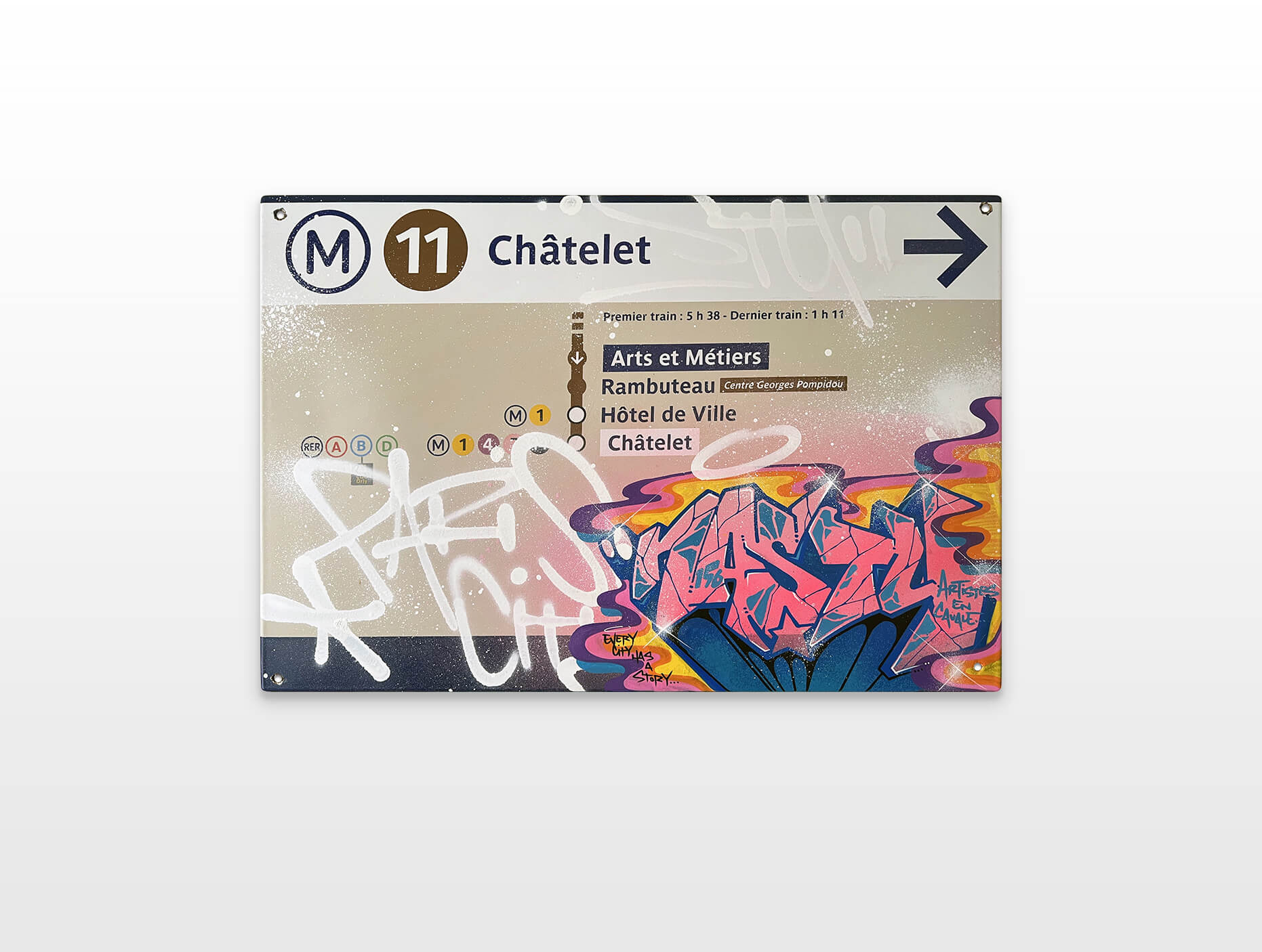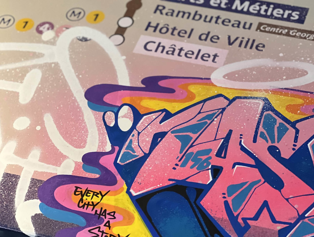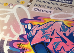 Nasty finds his creativity in all the cities, but especially Paris has a unique story for him. This is where he began with spraying metro plans, aluminum plates and ceramic tiles all, from the Parisian subways. This exhibition is revisiting various different styles of Nasty.