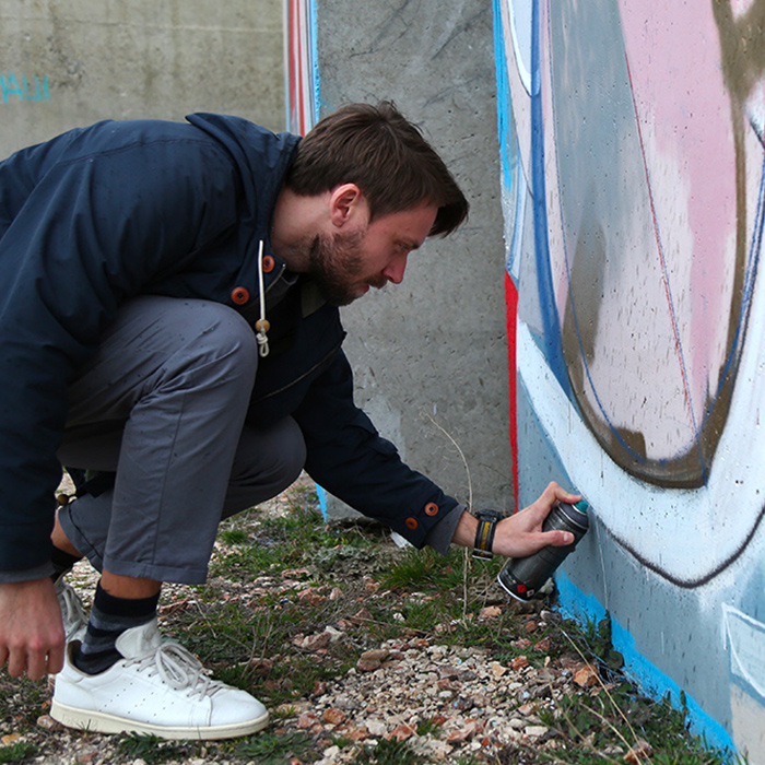 He stated spraying in the 2000s practicing typical graffiti fonts. In his first attempts he was trying to imitate amazing graffiti writing that he saw in magazines. Gradually developed his recognizable abstract style. In 2012 the found a way to express his unique style that he was able to call his „own“. Nevertheless he is always looking for new techniques without losing the desire to experiment and discover new approaches in graffiti. He himself describes his works appropriately as contemporary abstraction and experimental muralism.