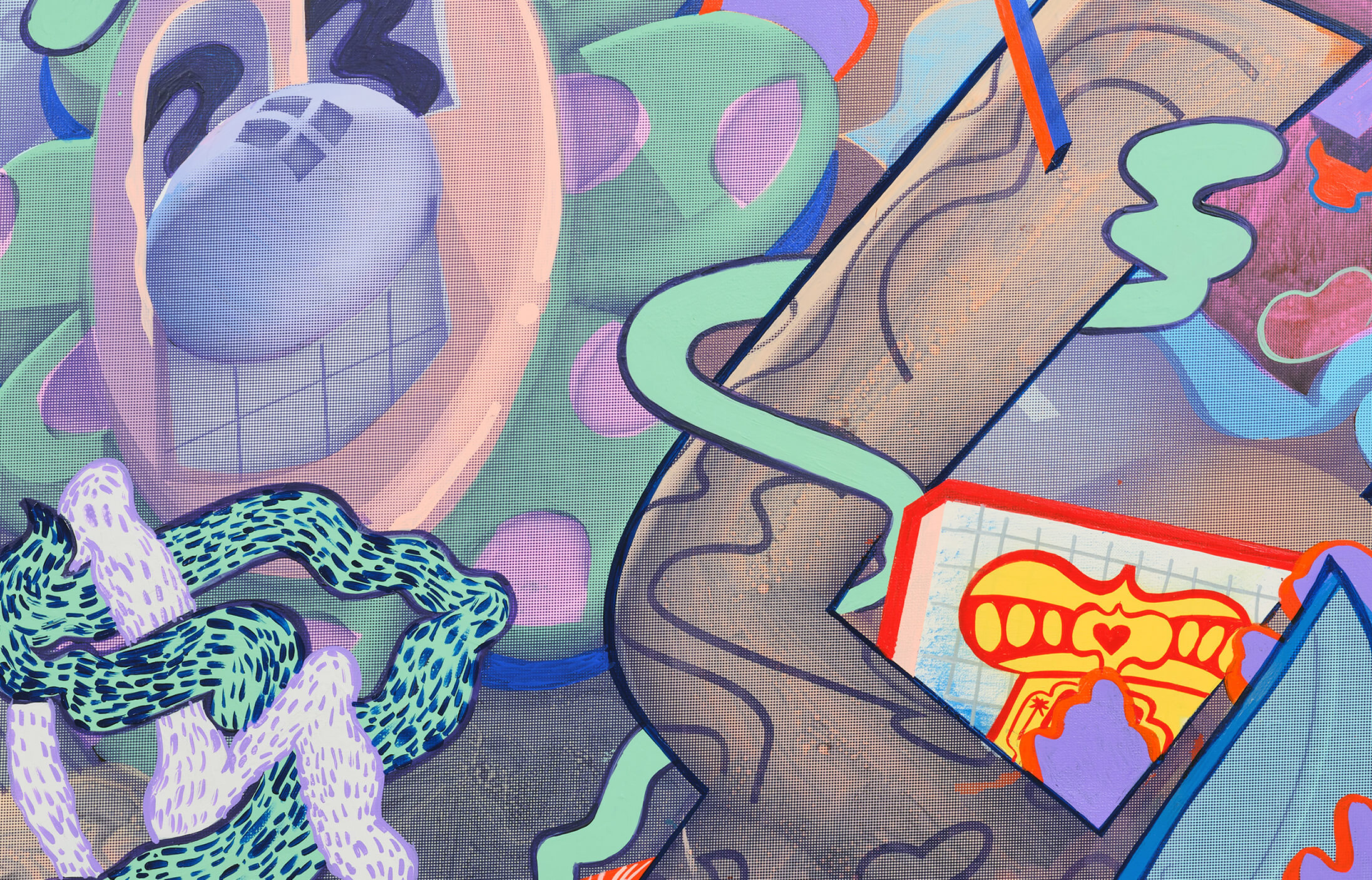 Sickboy’s artworks are colorful, dynamic and rich in imagery. His artworks juxtapose abstract and figurative aspects that are arranged in a multi-dimensional universe. His style could be described as neo-surrealistic, cosmic and expressionist. Throughout his artistic path he has been inspired by Picasso, Hundertwasser and Gaudi as well as Spanish street artist La Mano.