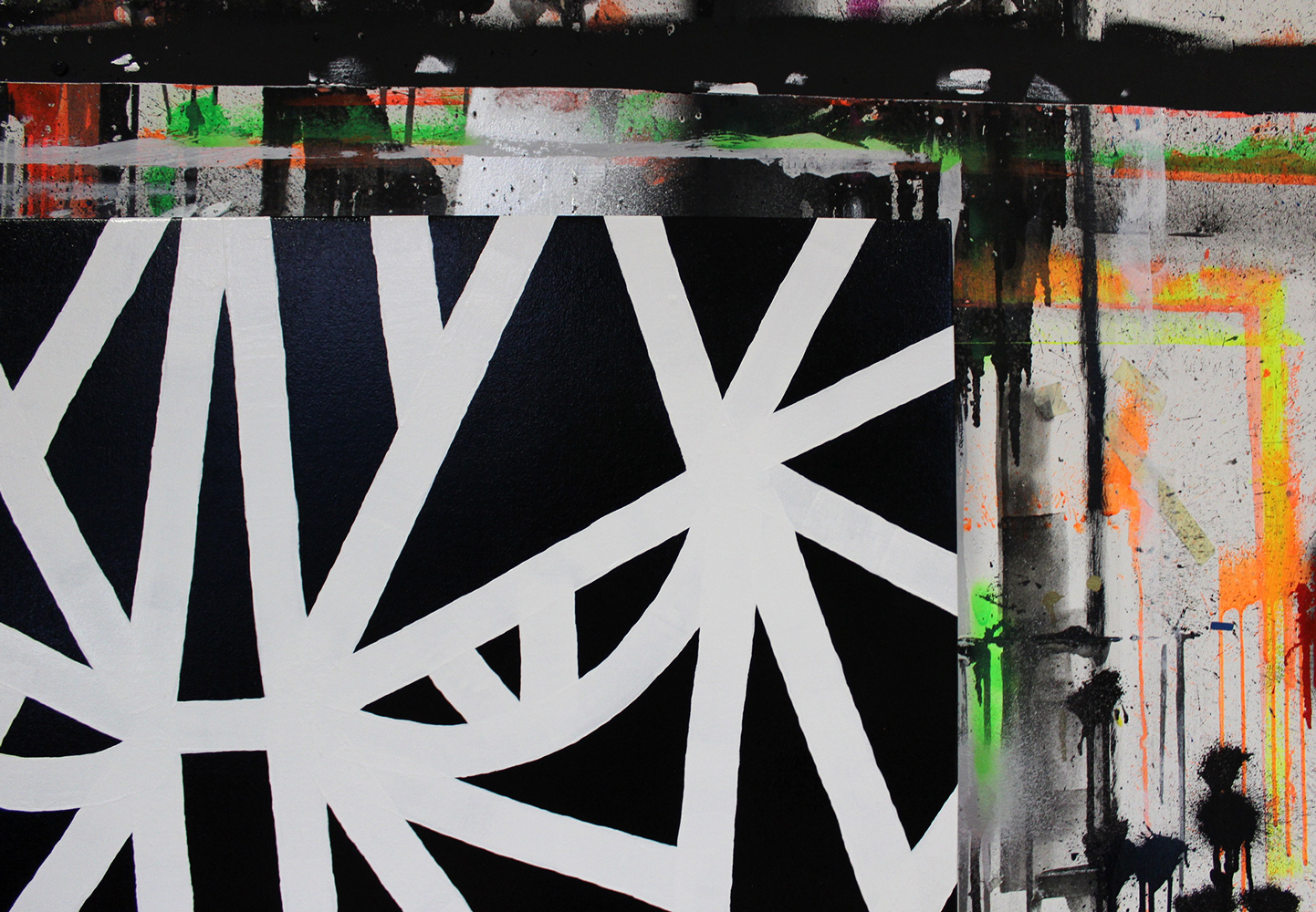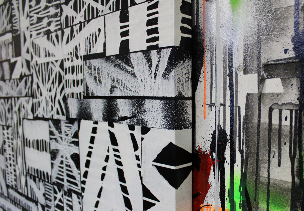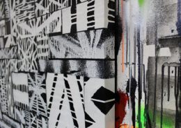 In Solomosty’s artistic practice the streets represent the place where he discovered a unique form of art as well as a kind of playground where he dares new techniques, tools and ideas without any rules. Freedom in the streets means a lot to him. Whereas in the studio he reflects and digests what he just experienced in the streets and tries to implement and manifest it his studio-based paintings.
