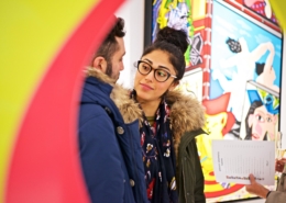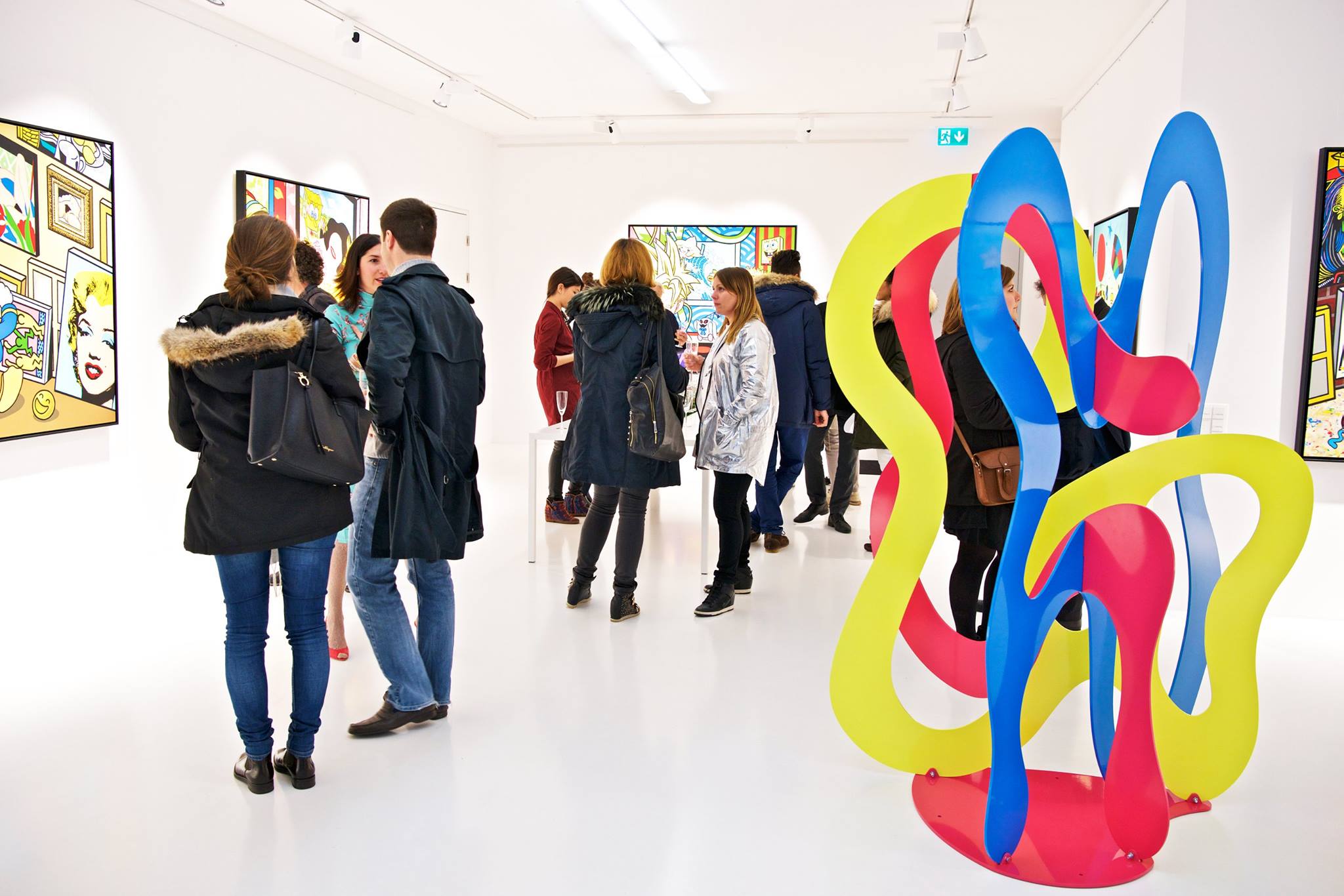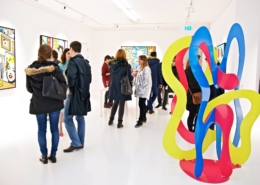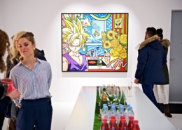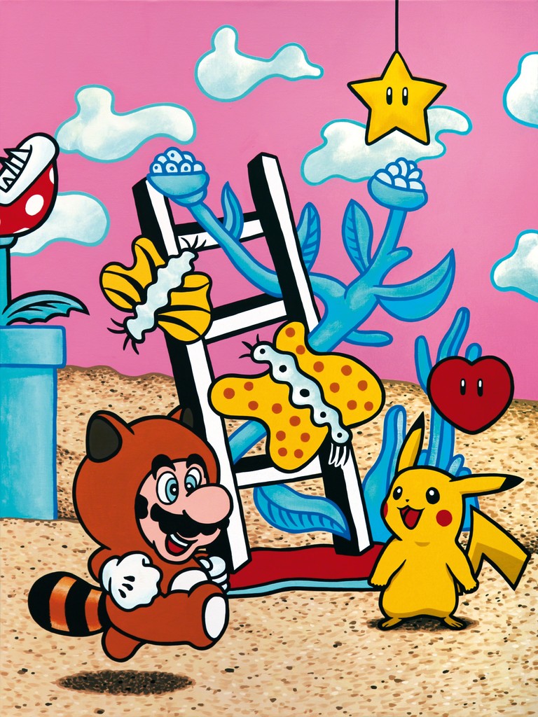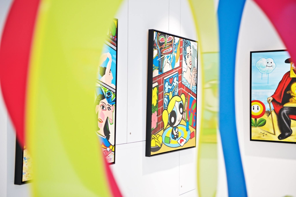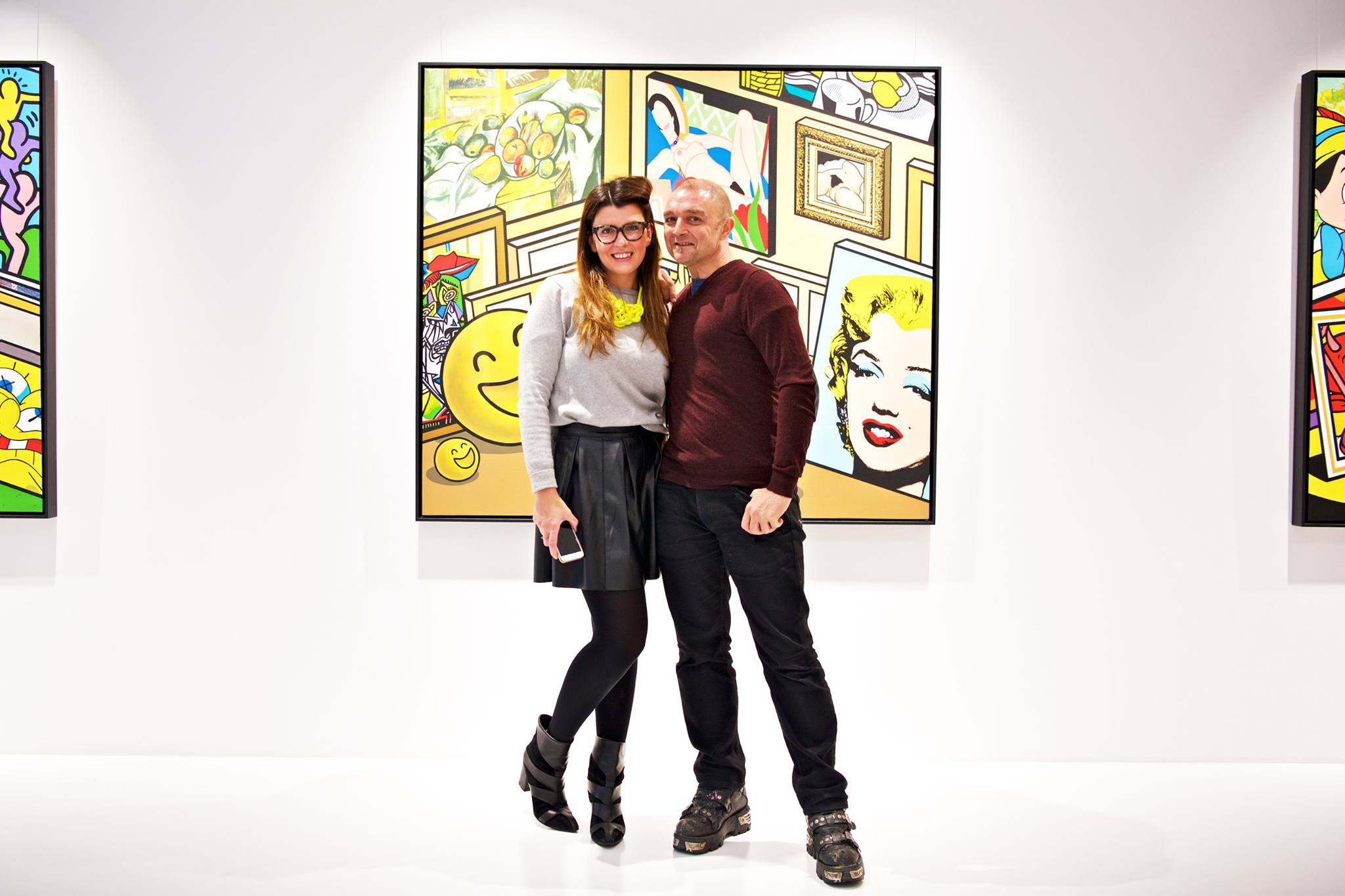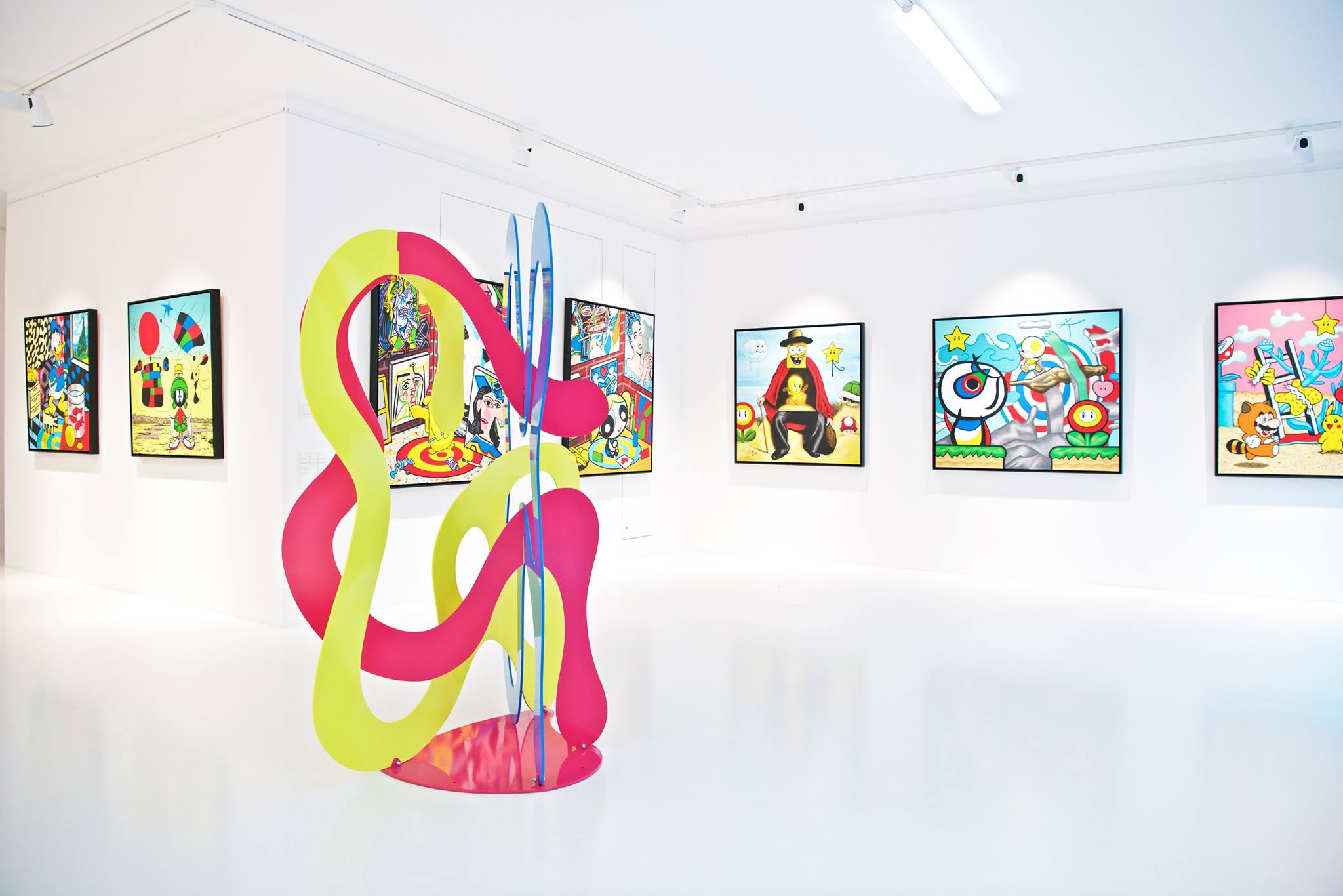 Clashing emblematic images resembling visual citations of different historical eras are arranged in a unusual yet well composed setting. Famous art works from Pop Art, Classical Modernism as well as Comic Characters are juxtaposed. In the exhibited paintings the observer sees Tom Wesselmann’s nudes, Von Gogh’s sunflowers or Keith Haring figures staging with Japan comic hero Son Goku, Disneys popular Micky Mouse or Pokémon’s Pikachu. Under the rather generic title of the exhibition Speedy Graphito actually wants to express his feelings towards globalization and history of art.