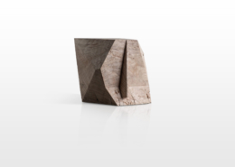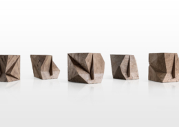 Asymmetry introduces an imbalance and thwarts the geometric status of the cube, creating a contingency, an event that is neither entirely due to chance nor to determinism. The fragments can be held in the hand and offer themselves for contemplation and tactile encounters. A meditative interaction is created, which multiplies the perspectives of the object.