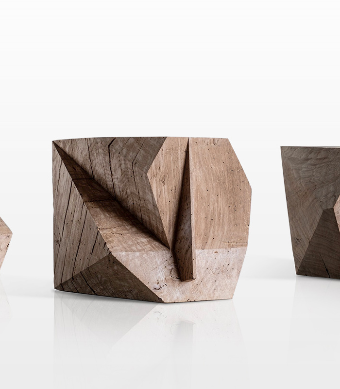 Aroèdre represents a new cycle of Steph Cop’s artistic development. The deconstructed, sculpted and fragmented cubes seem minimal and clean, yet they revel a multitude of forms. The arranged sequence of asymmetries, is called Polymorphs of the Soul. Their multiple and asymmetrical facets reflect as numerous prisms that define its plural identity.
