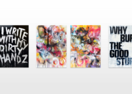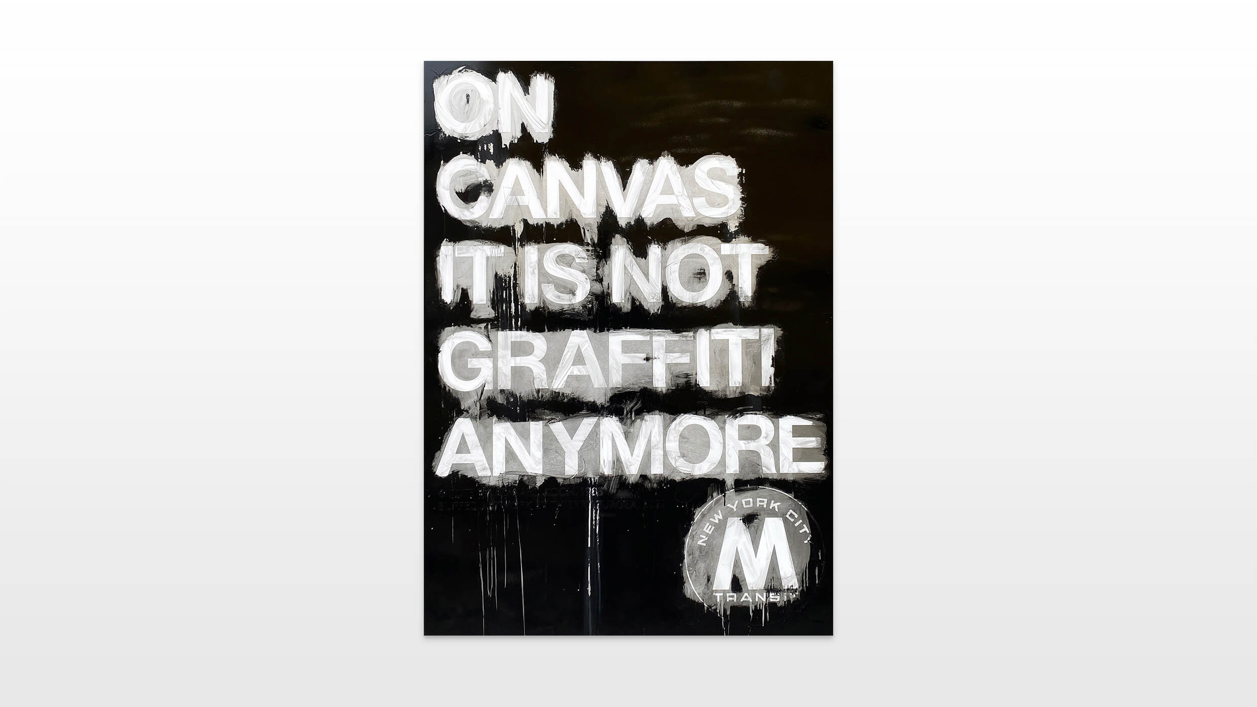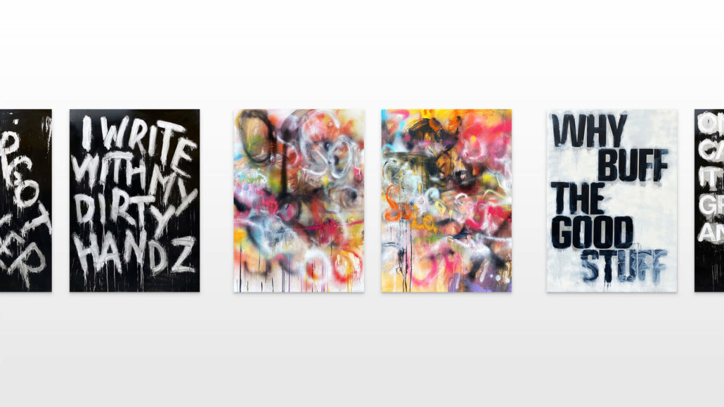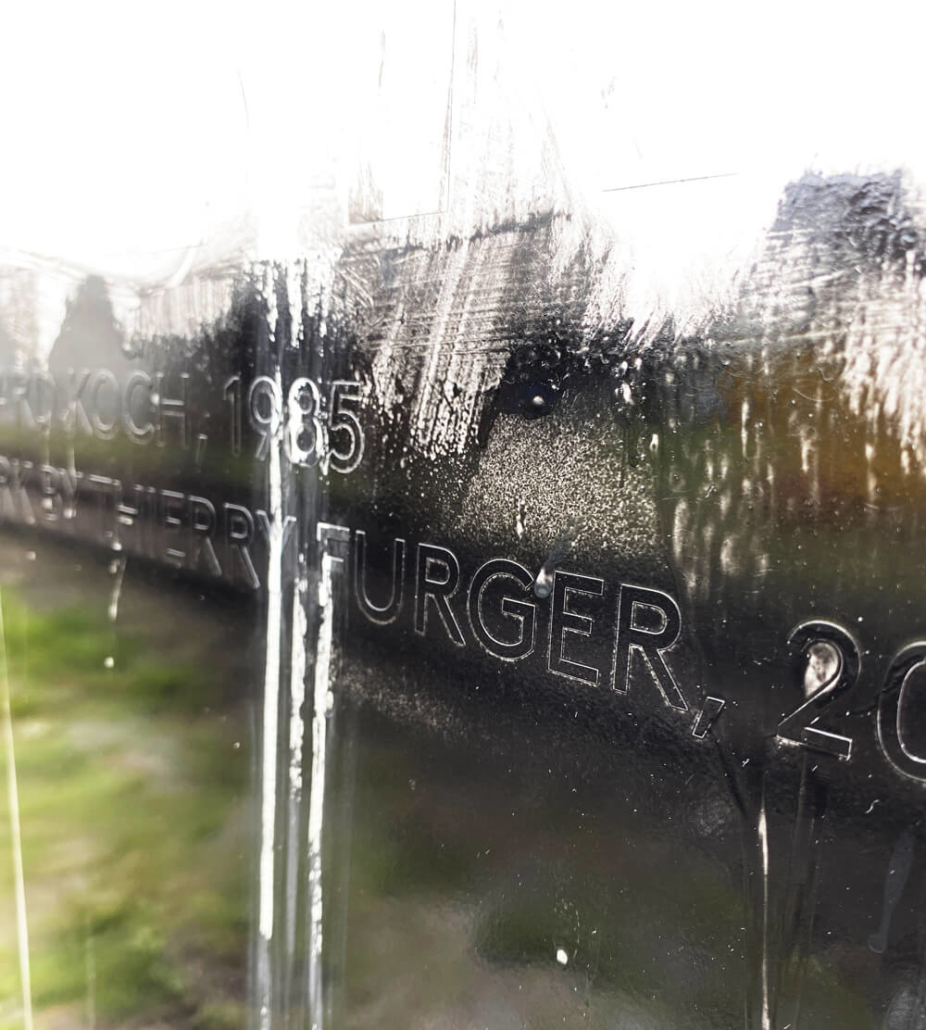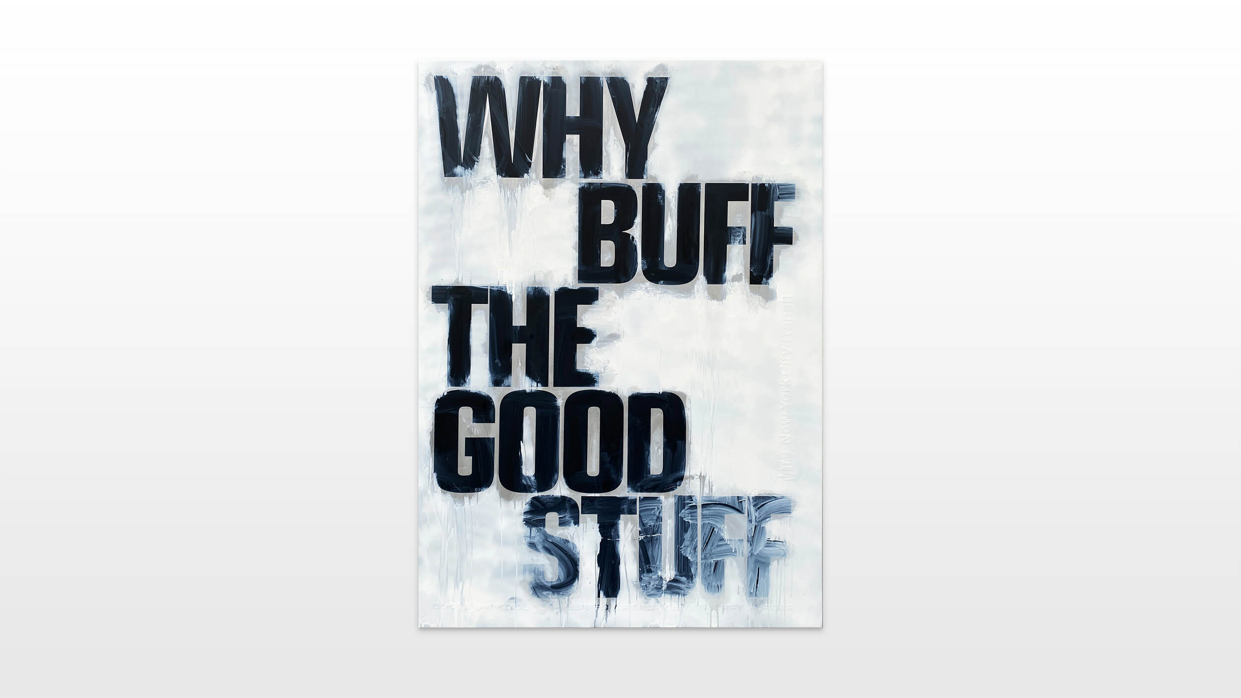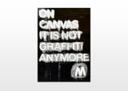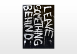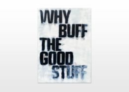 relevant safety-relevant lettering on the vehicles again. In Furger’s long lasting observations he noticed that safety-relevant lettering is usually cleaned long before the train car is thoroughly cleaned. These art works juxtapose the corporate font and the buffed graffiti. One of them seems clean and institutional and the other one, soft and muddy. Here, Thierry Furger succeeds in capturing a moment that often goes unnoticed by society. The buffed fonts, represent statements which are representing the punchy, ironic and witty spirit of graffiti.
