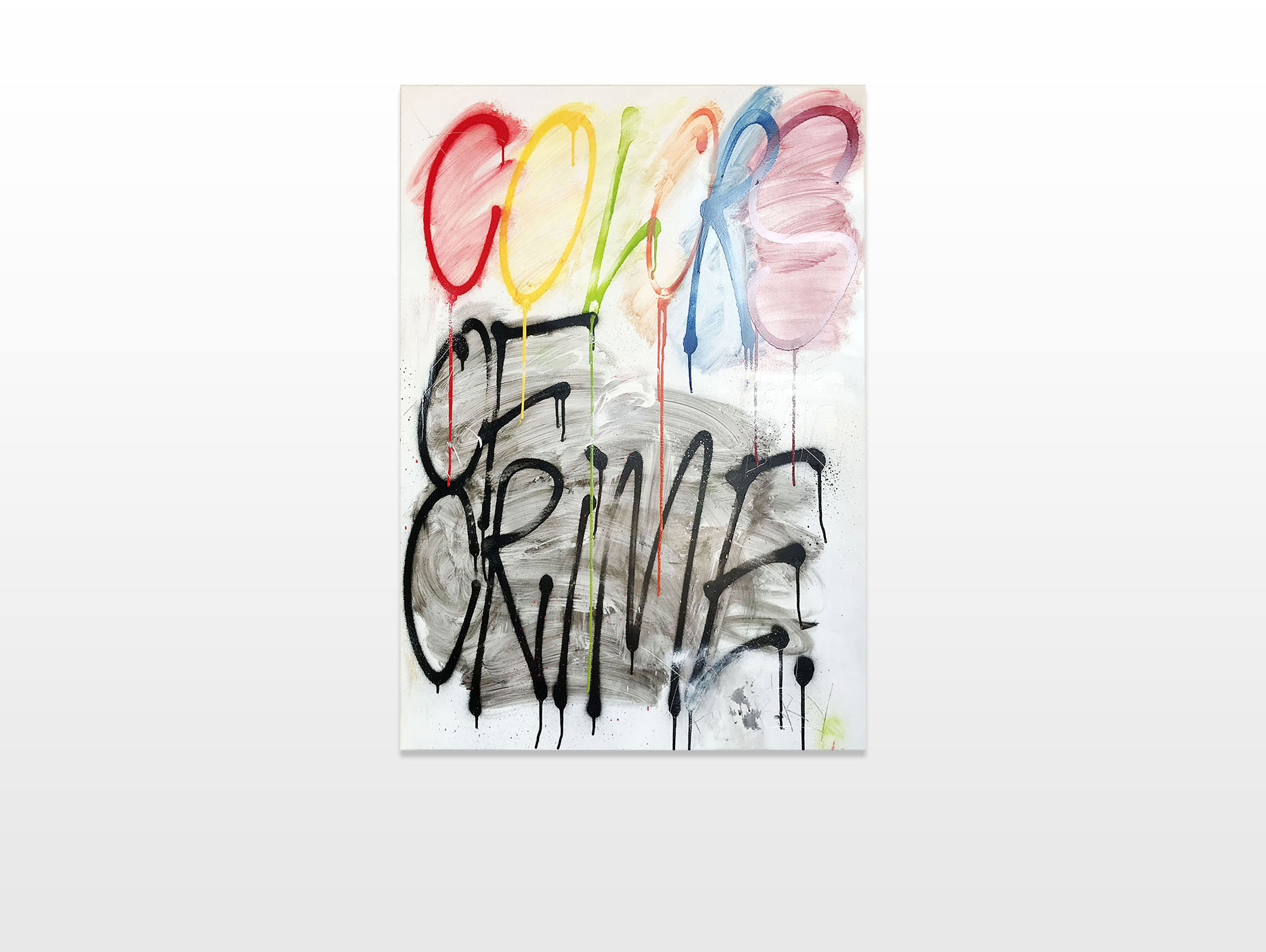 During Furger’s long-term observations of the aesthetics of graffiti the cleaning traces inspired Furger’s own formal aesthetic characteristics. Furger’s artistic practice is explained as following. First, he sprays tags, throw up and pieces on metal or aluminium boards. Afterwards, they are cleaned or painted over by the artist using the same graffiti-killers as the official train staff. As he himself is creating his own buff, he is able to control and steer the effects of transience. De- pending on the surface material and color applied, different compositions of color clouds, wipe marks, drips and swings appear as a result of spontaneous chemical reactions. Therefore, he creates pieces that are contrasting and challenging the usual high gloss look of art pieces exhibited in the white cube. Furger deliberately dispenses the representation of lettering, calligraphy, style or its decorative aesthetics but portrays an abstract representation of the aesthetics of speed and transience.
