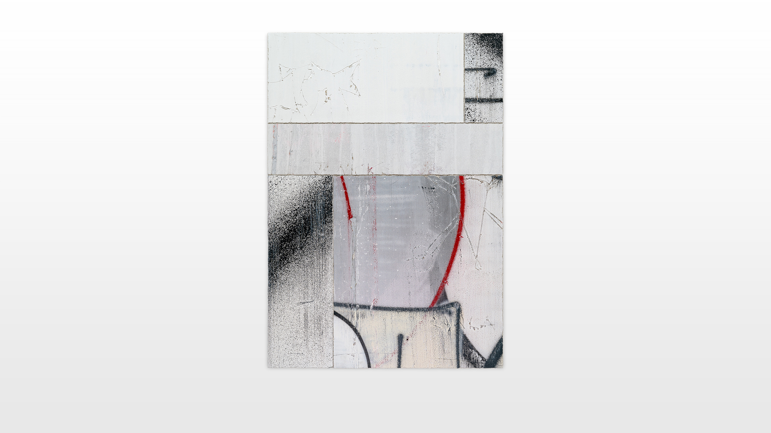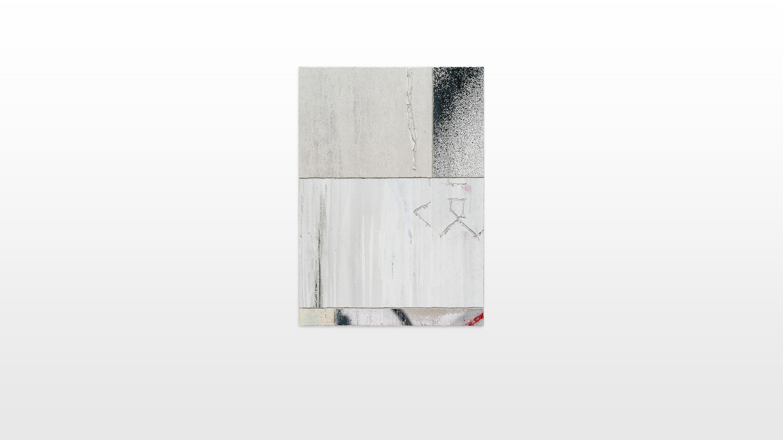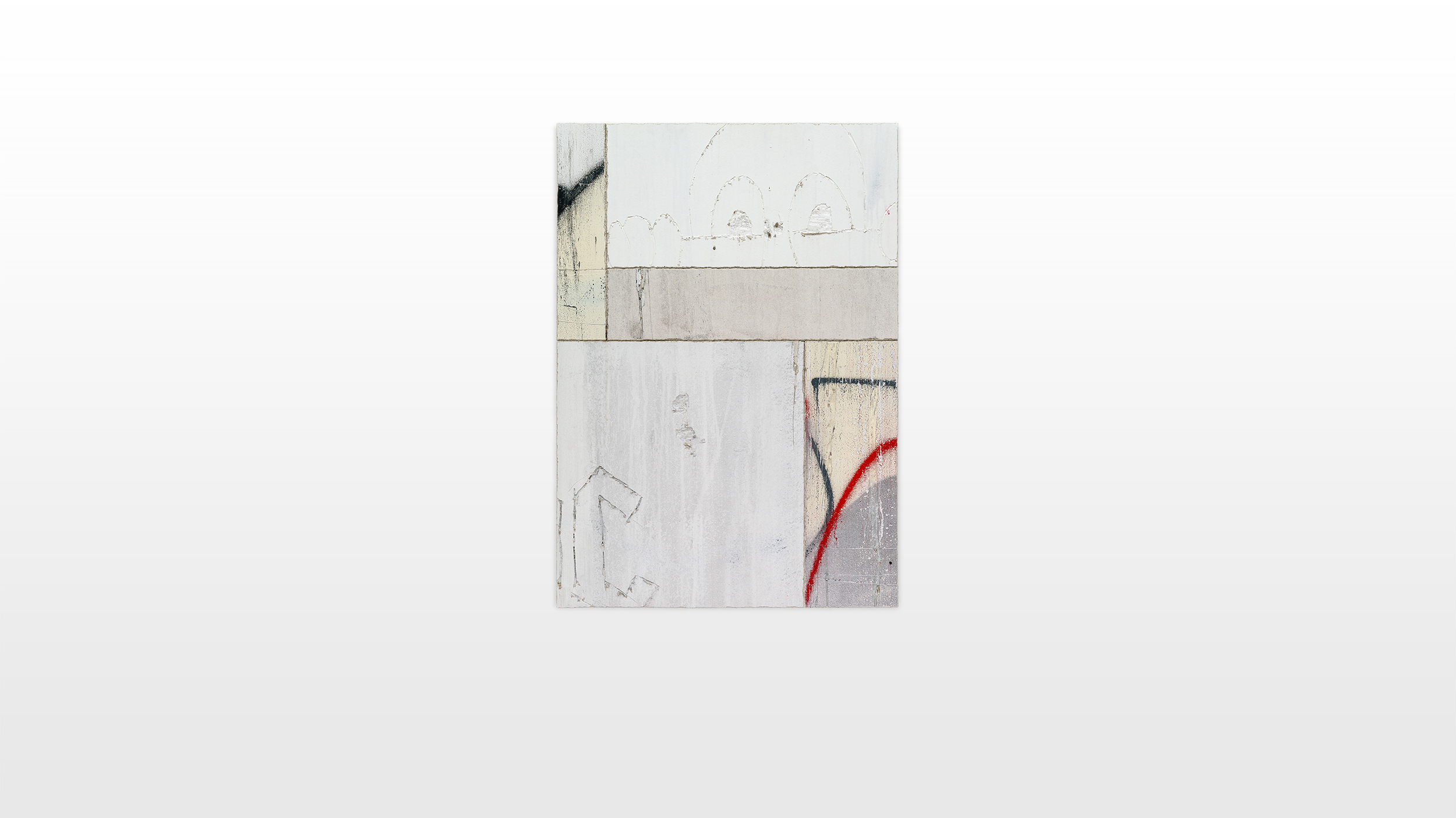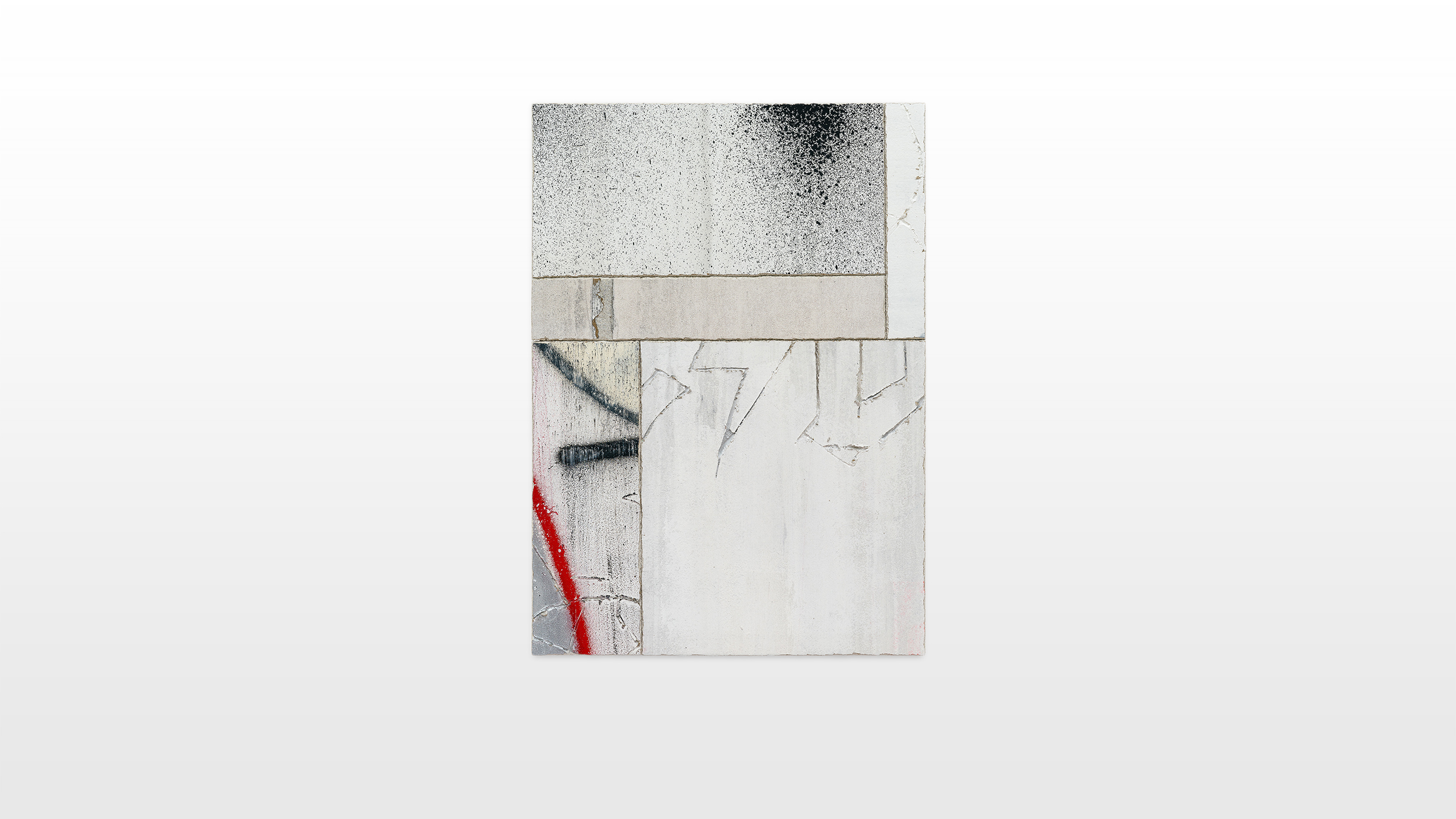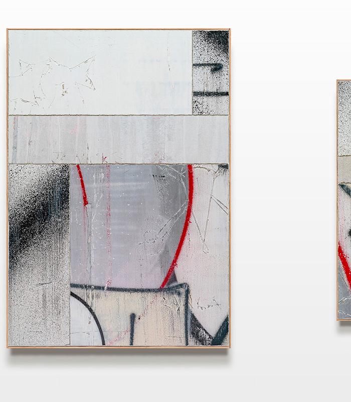 Layers of paint, spray paint and markers constitute a certain depth and intricacy in his works. Rough designed and impulsive scratched surfaces commemorate primitive caveman markings and drawings on walls to assert human existence across time. Within his altered practice he focuses on the beauty of tagging, dripping, as well as transience. He uses wild and illegible tags, throw ups and deliberate drips only as a formal aesthetic tool. In deconstructing subcultural and semiotic codes, Tilt plays with the decontextualization of writing, textures and intensity. The compositional layers are sensibly chosen in its colors and dynamics, in order to create a piece of deconstruction, disintegration and juxtaposition. The heavy heritage of the graffiti tradition is used as a tool to evoke a representation or memory of a rebellious as well as anarchic act of a past era of subculture. The new works of art constitute a synthesis between exterior and interior space. Tilt’s series critically questions and pinnacles the challenge of the institutionalization of graffiti. In contrary, by hanging a re-enacted wall fragment in an exhibition space, a „sacralisation“ of graffiti occurs.