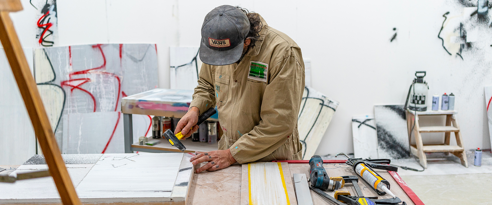 Tilt is well known for his primitive and fetishist bubble style graffiti that he practiced more than a dozen years. In June 2017 his last bubble style pieces were exhibited at the Kolly Gallery. Thereafter Tilt broke with the rather aesthetic and pop art tradition of bubbles in favor of a more raw and deconstructive approach on graffiti. During the beginning of his career the raw style and aesthetic of graffiti was not accepted by society and institutions, because it was interpreted as destructive, rebellious and anarchic. Nowadays, Tilt is newly motivated to bring the rather anti-aesthetic look in for of a deconstruction of the urban environment back into the institutions, making it accessible for the commercial and broad audience. Transience, chaos and gestural traces of urban environment are portrayed in Tilt’s new body of work. He dedicated himself to a very pure and anti-aesthetic approach, which makes graffiti writing so unique and intriguing. In his new compositions the heavy heritage of the graffiti tradition is used as a tool to evoke a representation or memory of a rebellious as well as anarchic act of a past era of subculture.