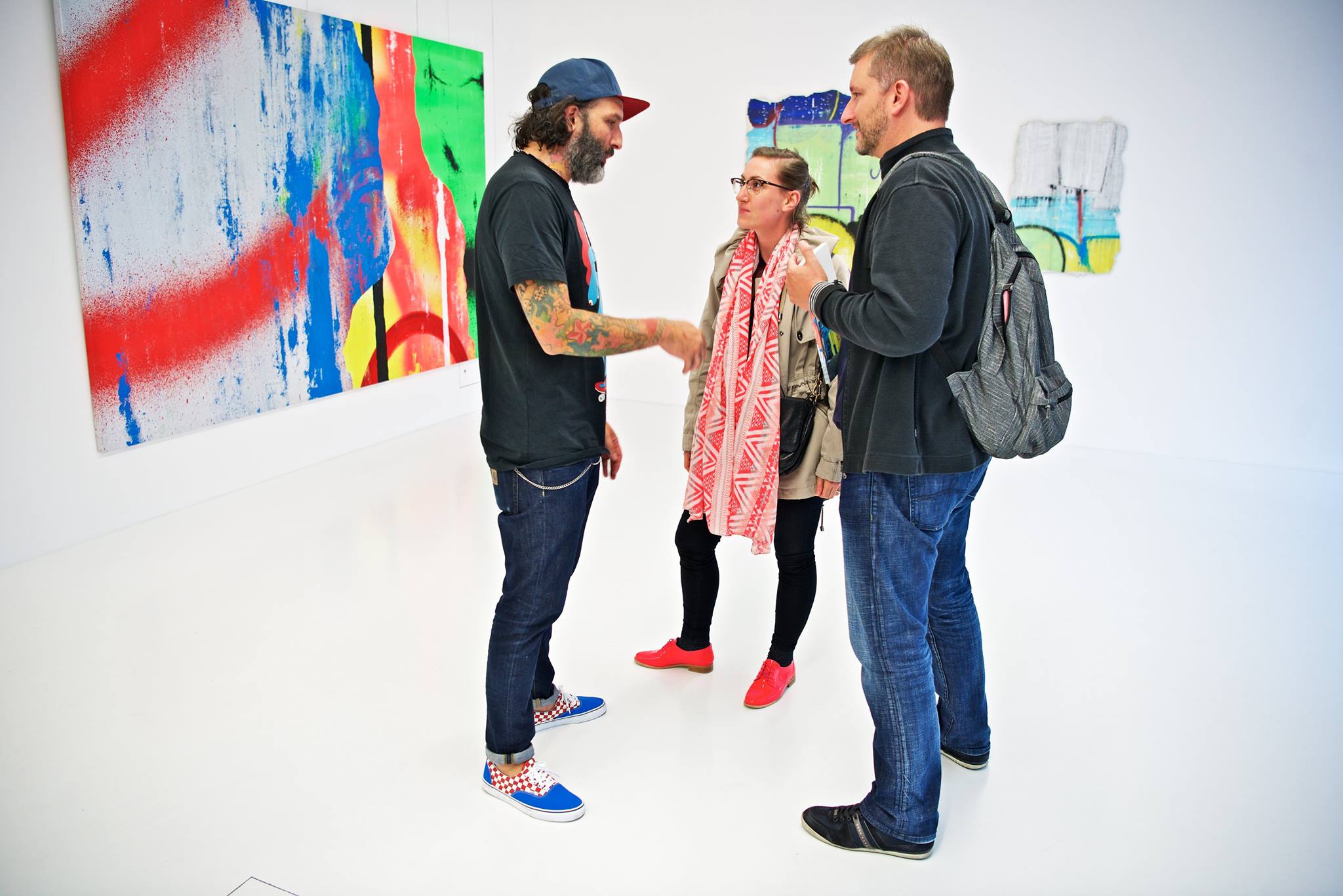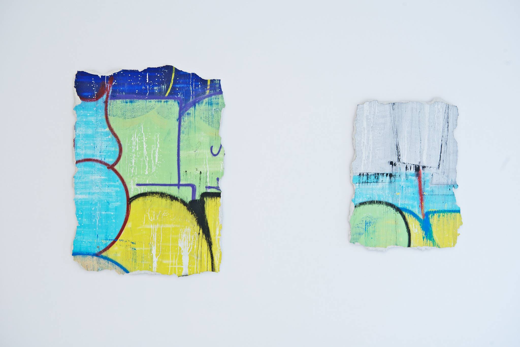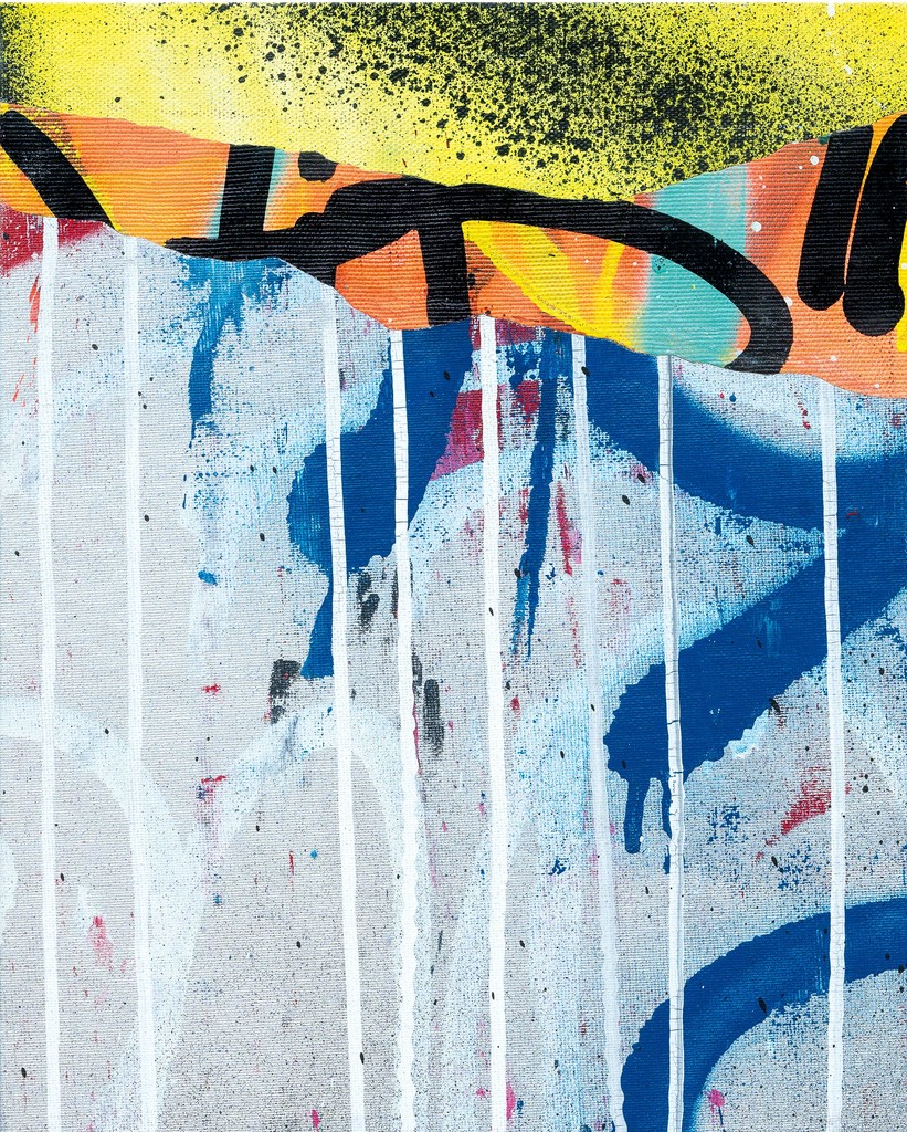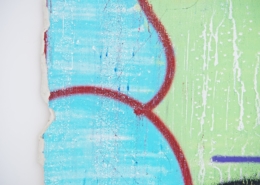 The heavy heritage of the graffiti tradition is used as a tool to evoke a representation or memory of a rebellious as well as anarchic act of a past era of subculture. The new pieces of art constitute a synthesis between exertion and interior spaces. Anti-aesthetic excerpts from the urban sphere have been rearranged and made accessible for a commercial audience.