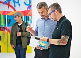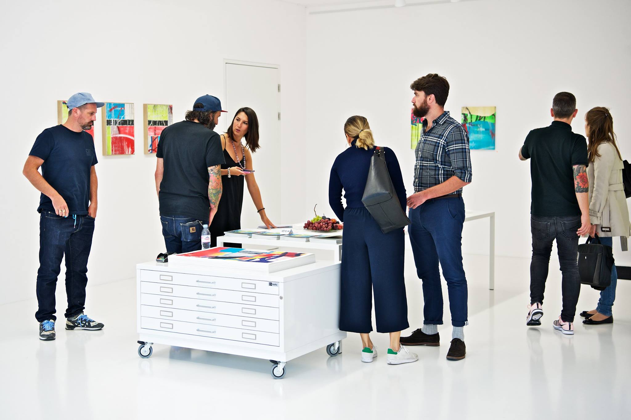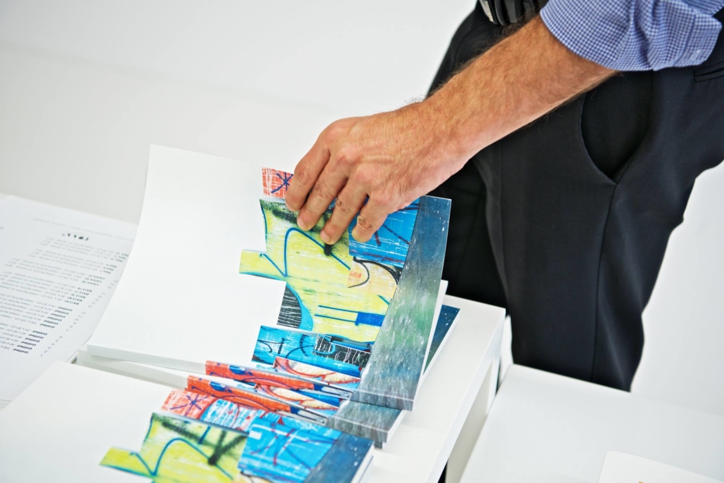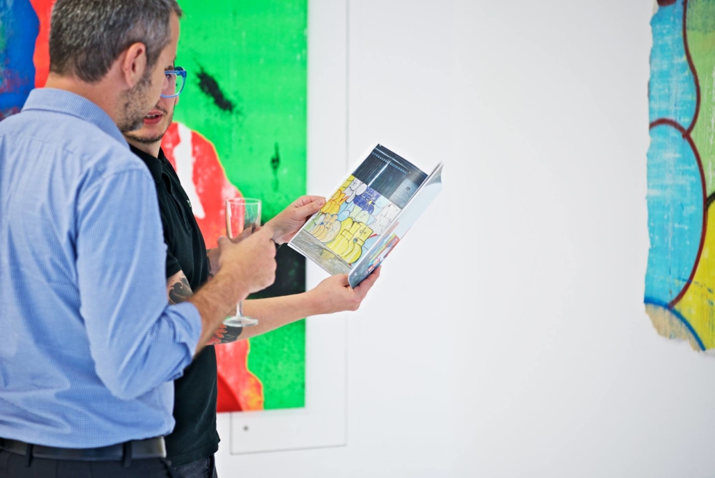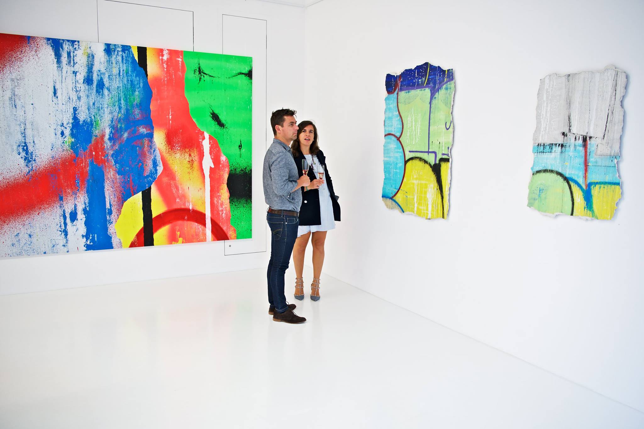 The heavy heritage of the graffiti tradition is used as a tool to evoke a representation or memory of a rebellious as well as anarchic act of a past era of subculture. The new pieces of art constitute a synthesis between exertion and interior spaces. Anti-aesthetic excerpts from the urban sphere have been rearranged and made accessible for a commercial audience.