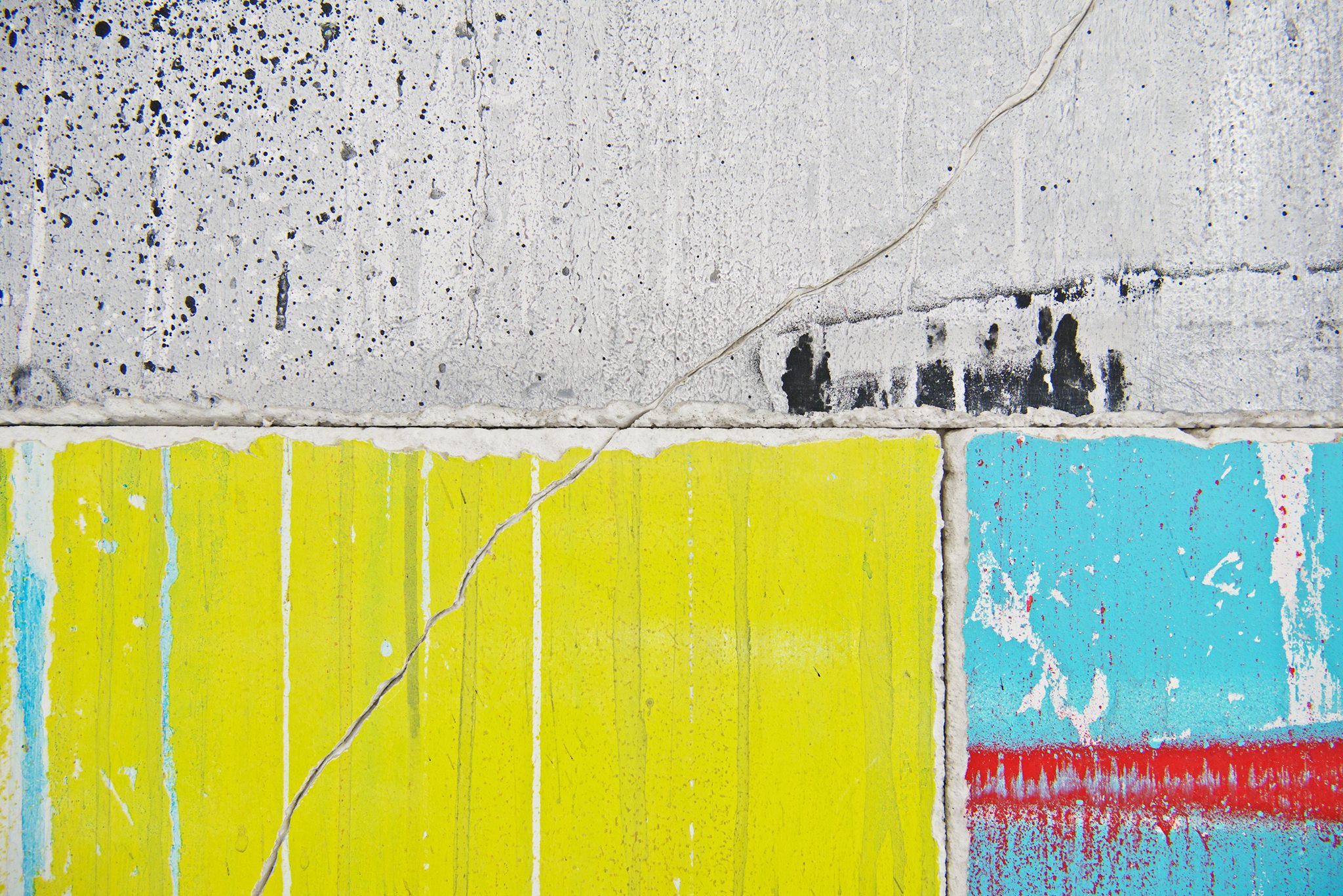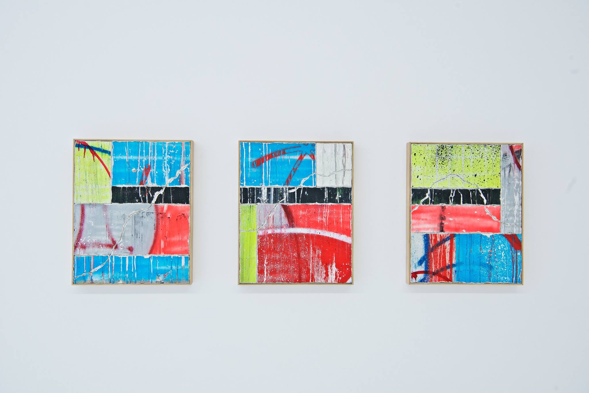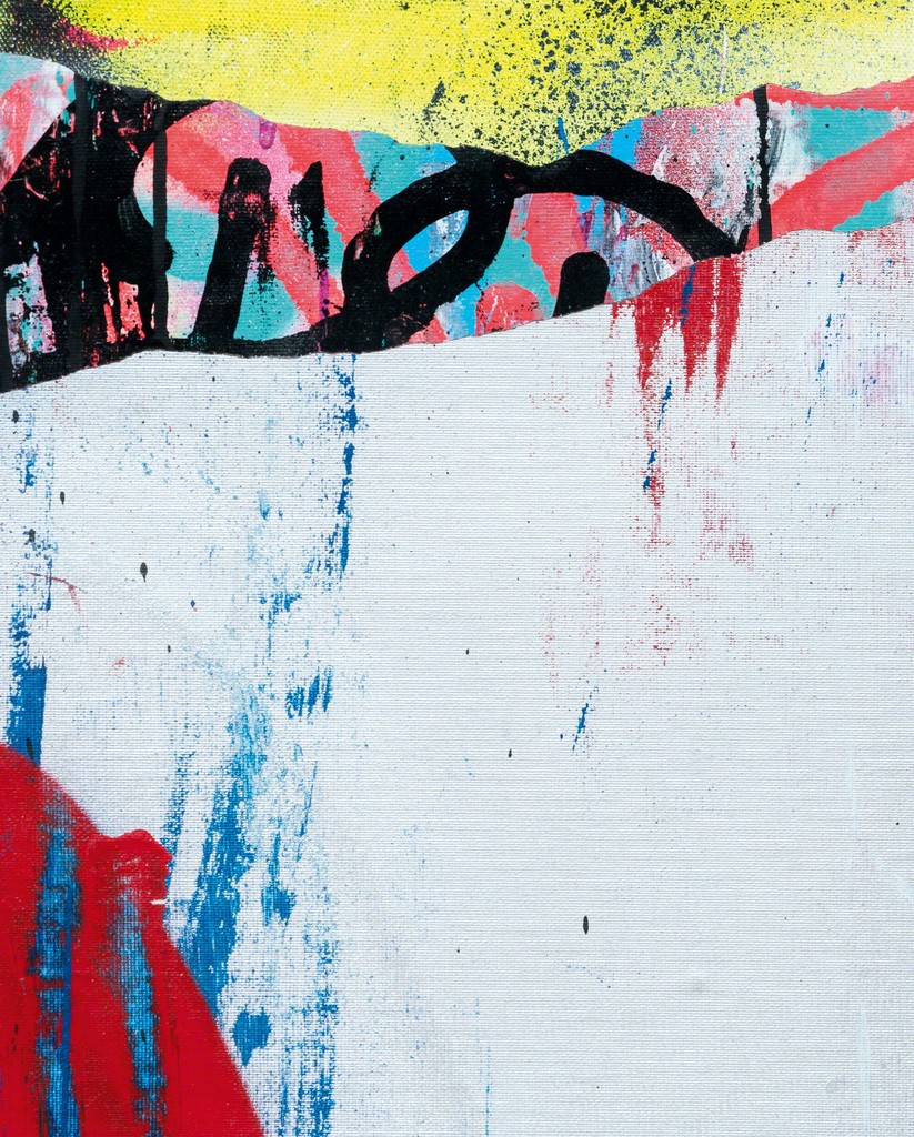 Rough designed and impulsive scratched surfaces commemorate primitive caveman markings and drawings on walls to assert human existence across time. In Tilt’s new pieces graffiti writing is represented layer by layer, parallel to the organic sedimentation process. This compelling approach evokes an aesthetic of urban history and outer environments inside a gallery. Within his altered practice he focuses on the beauty of tagging, dripping, as well as transience. In deconstructing subcultural and semiotic codes, Tilt plays with the decontextualization of writing, textures and intensity. The compositional layers are sensibly chosen in its colors and dynamics, in order to create a piece of deconstruction, disintegration and juxtaposition.