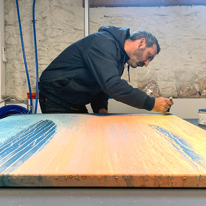 Being a self-thought artist he eventually started painting in a studio around 2000. Since his debut Zest has been part of many group and solo exhibitions around the world. Zest’s artistic signature is also found on numerous murals around the globe like: Toulouse, Montpellier, St. Tropez, Bordeau, Bueno Aires, Las Vegas and Zaragoza. During his artistic pursuit the design and fashion world crossed his path, which resulted as collaborations with Philippe Starck, agnès b and Uniqlo.